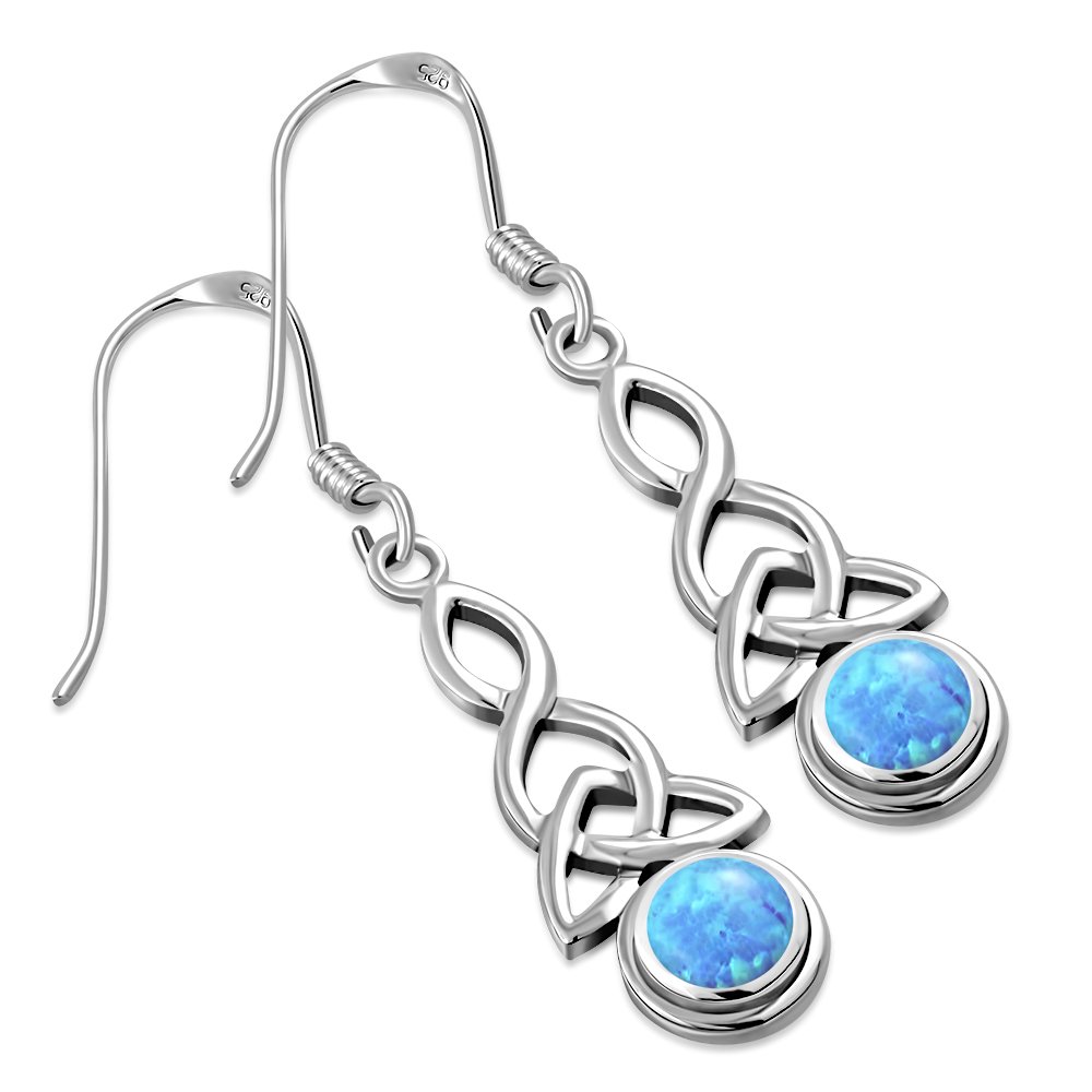Theme: Long Synthetic Opal Trinity Knot Silver Earrings.