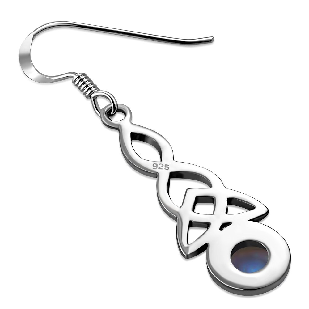 Long Synthetic Opal Trinity Knot Silver Earrings