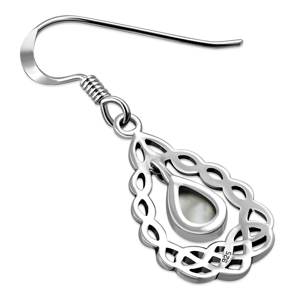 Mother of Pearl Drop Silver Celtic Knot Earrings