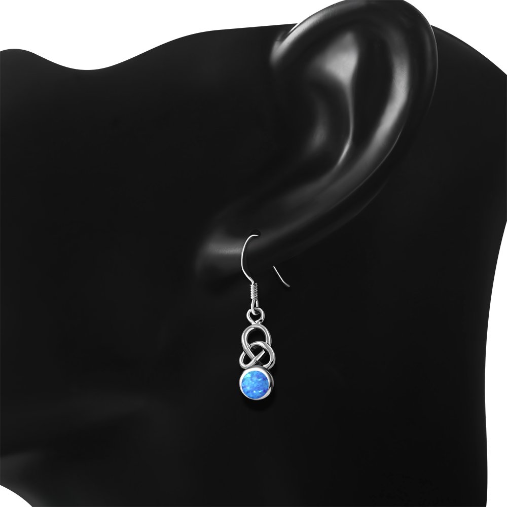 Theme: Synthetic Opal Celtic Knot Silver Earrings.