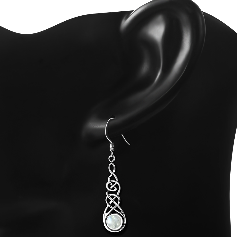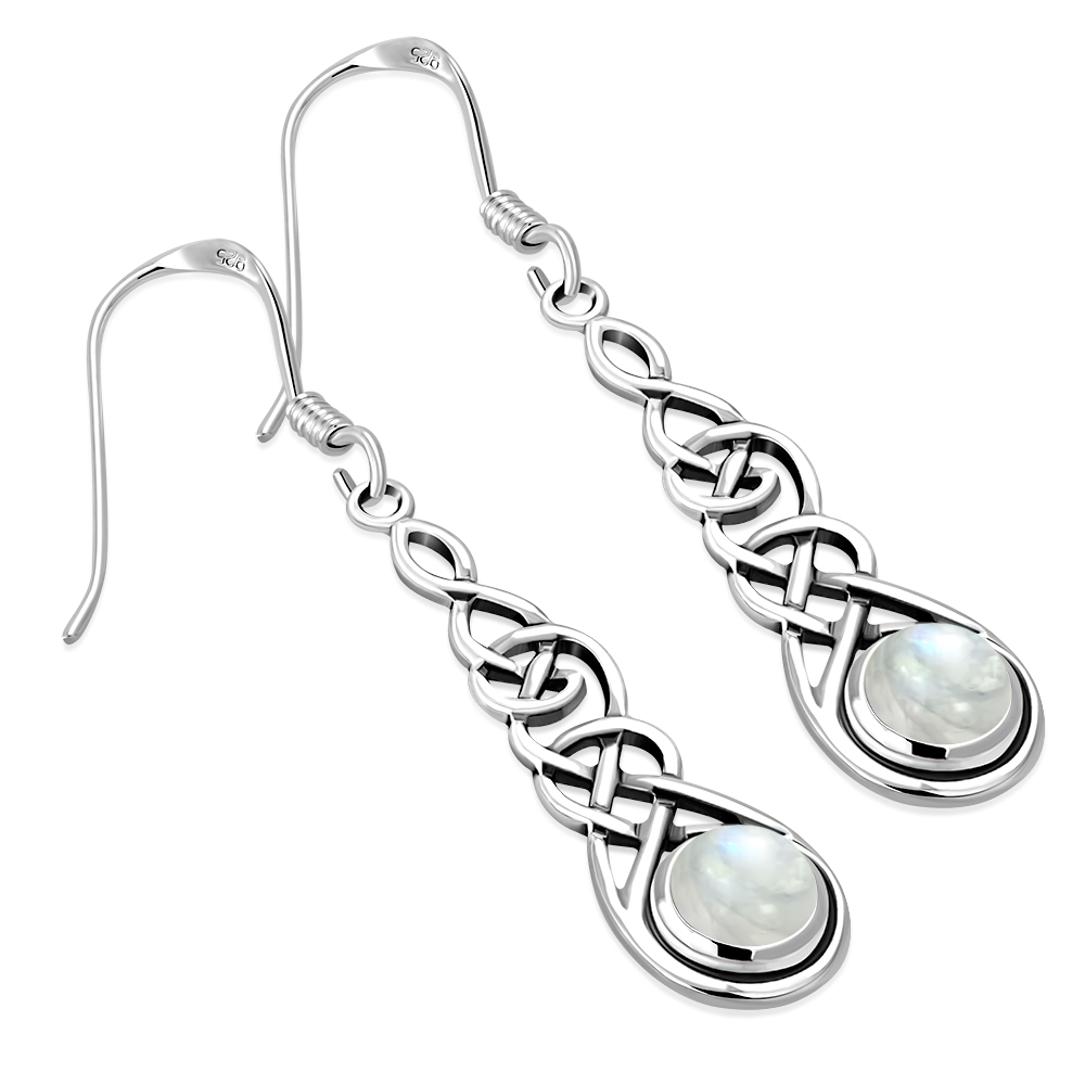 Jewelry as: Celtic Long Earrings w Rainbow Moonstone, Celtic Long