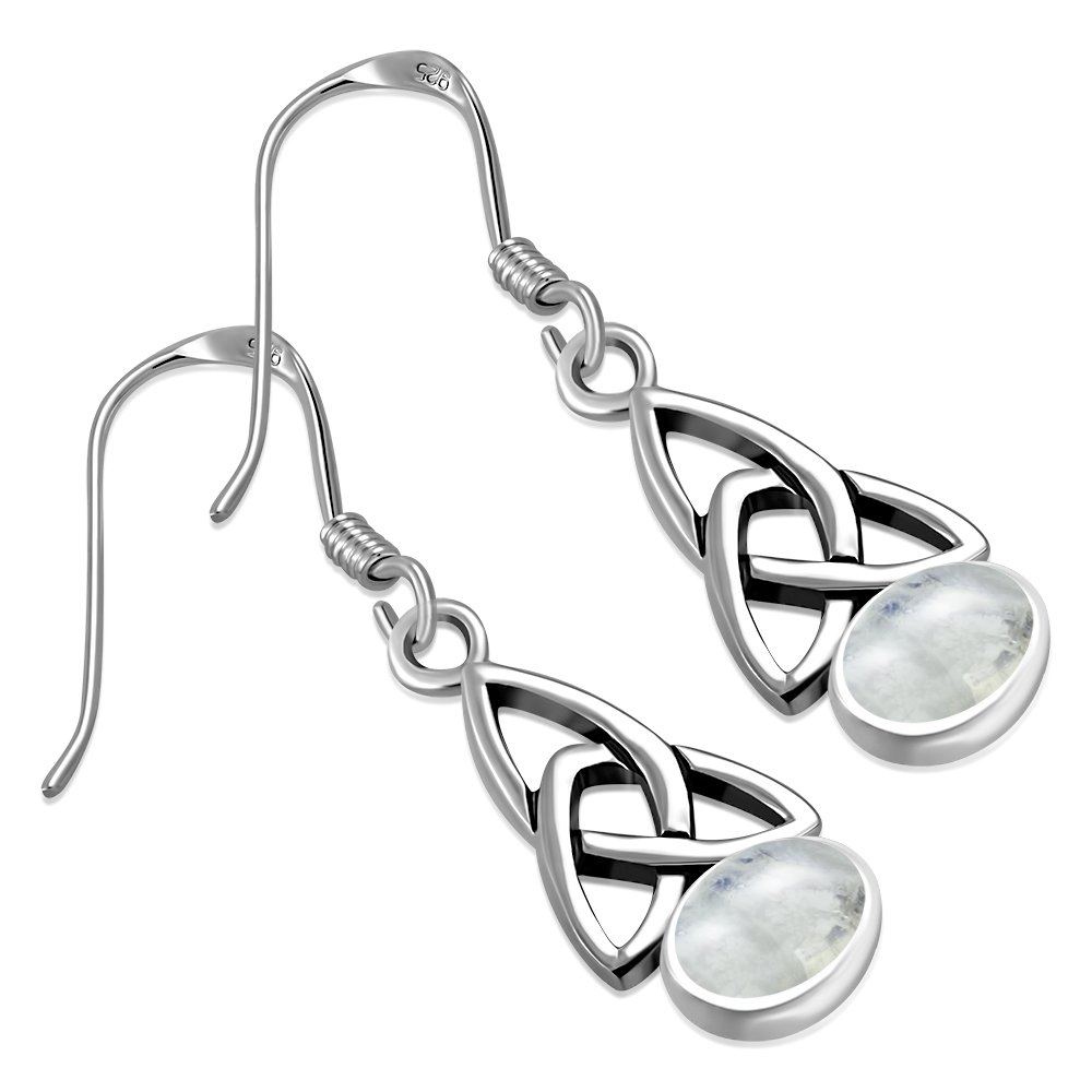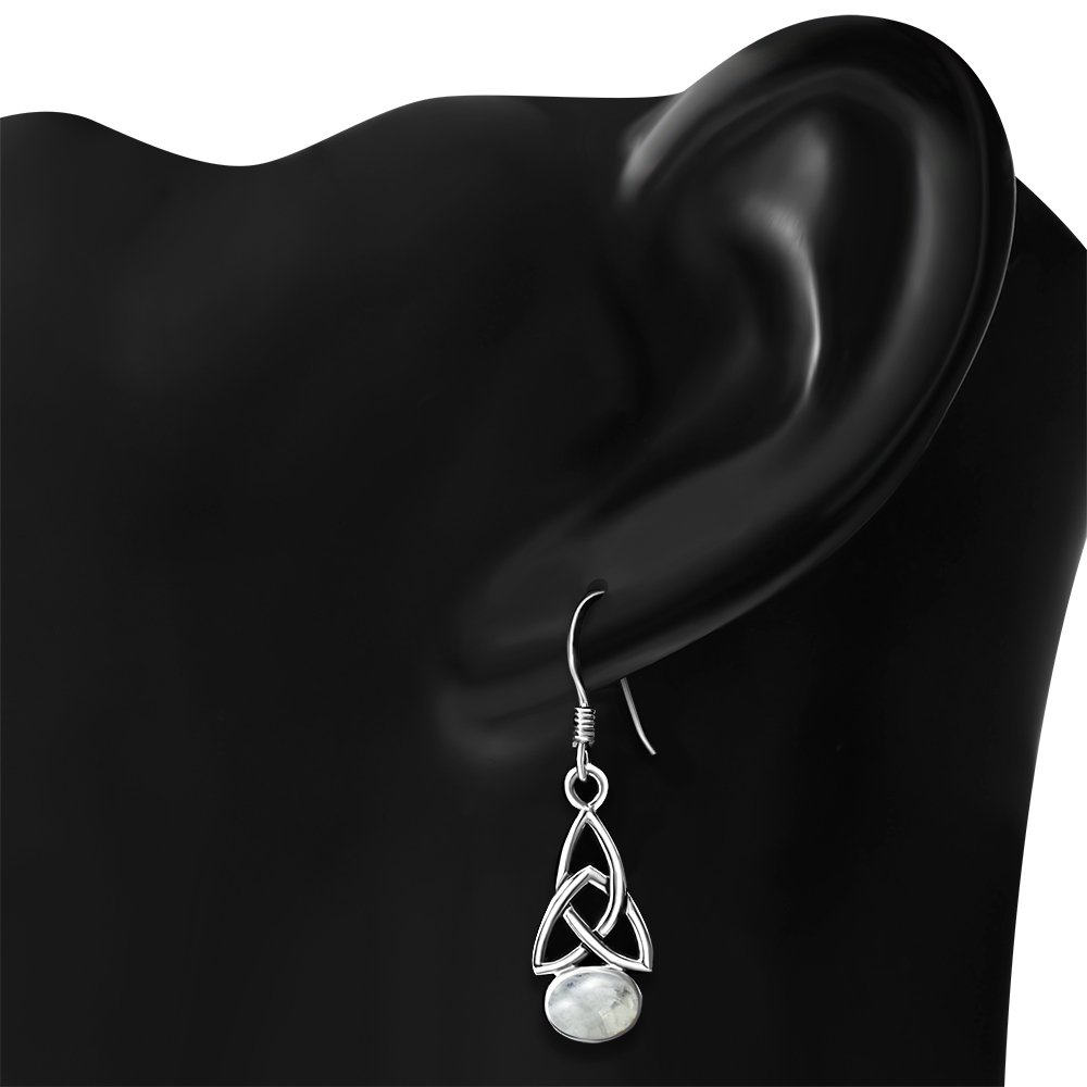 Trinity Knot Silver Earrings set w Rainbow Moonstone.