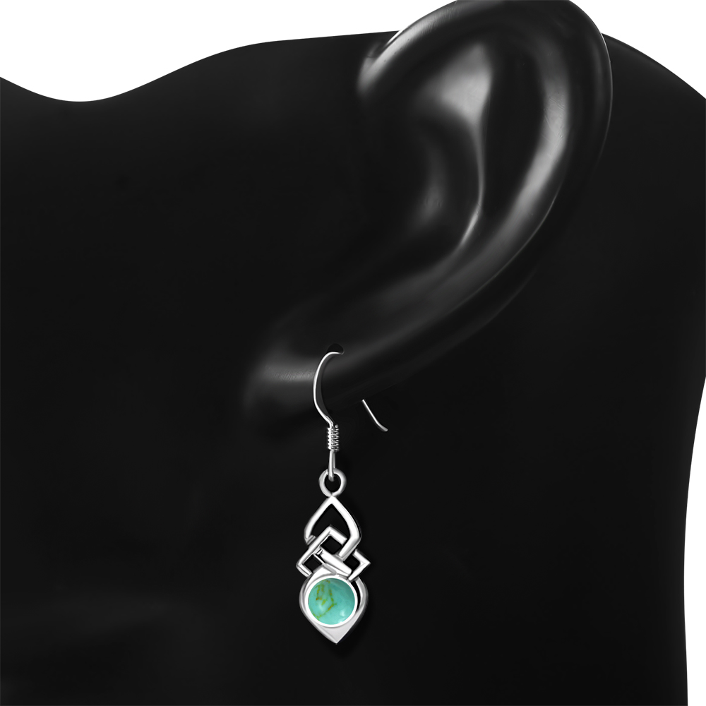 Silver Earrings w Dangle Amber Stone, Celtic Knot Silver Earrings w Dangle