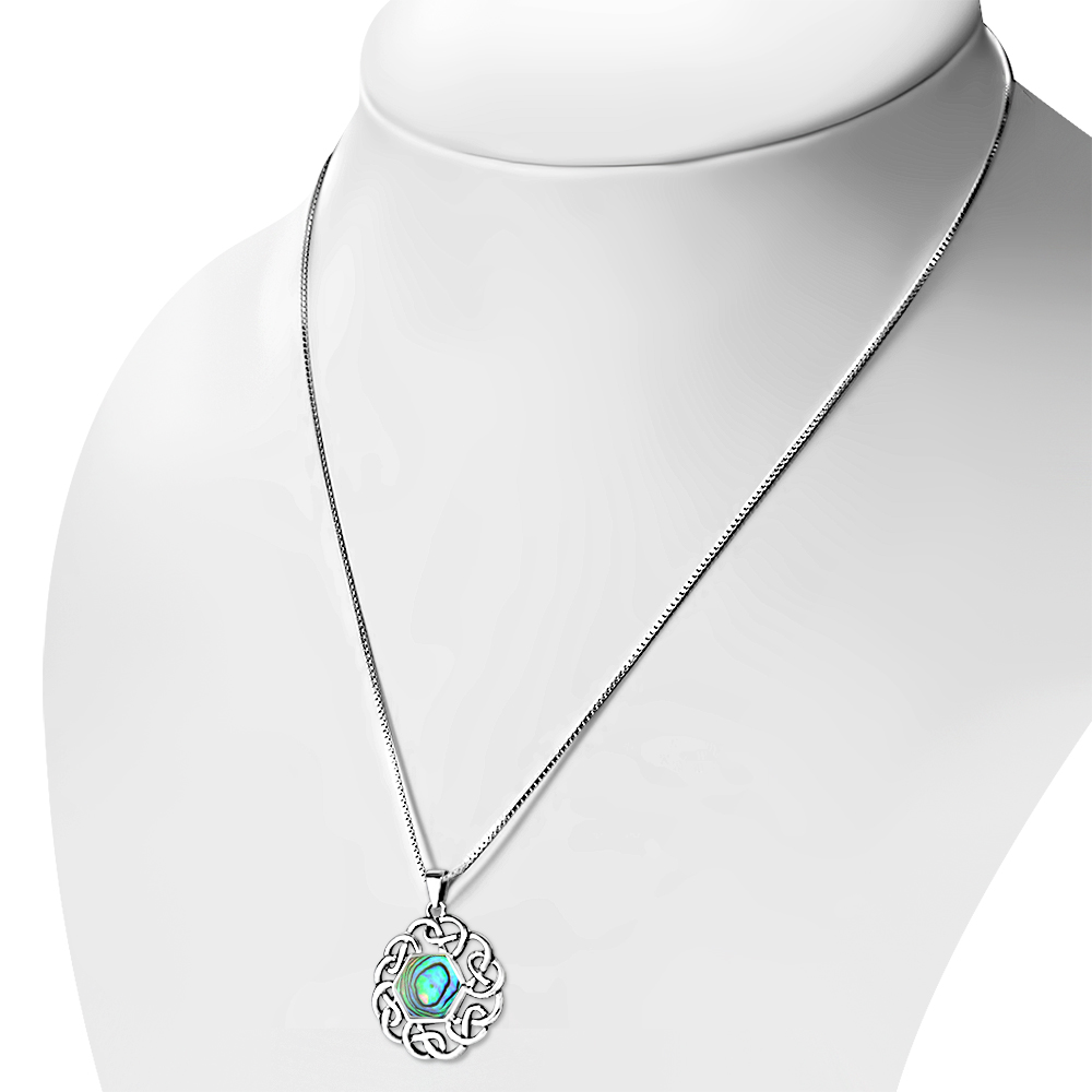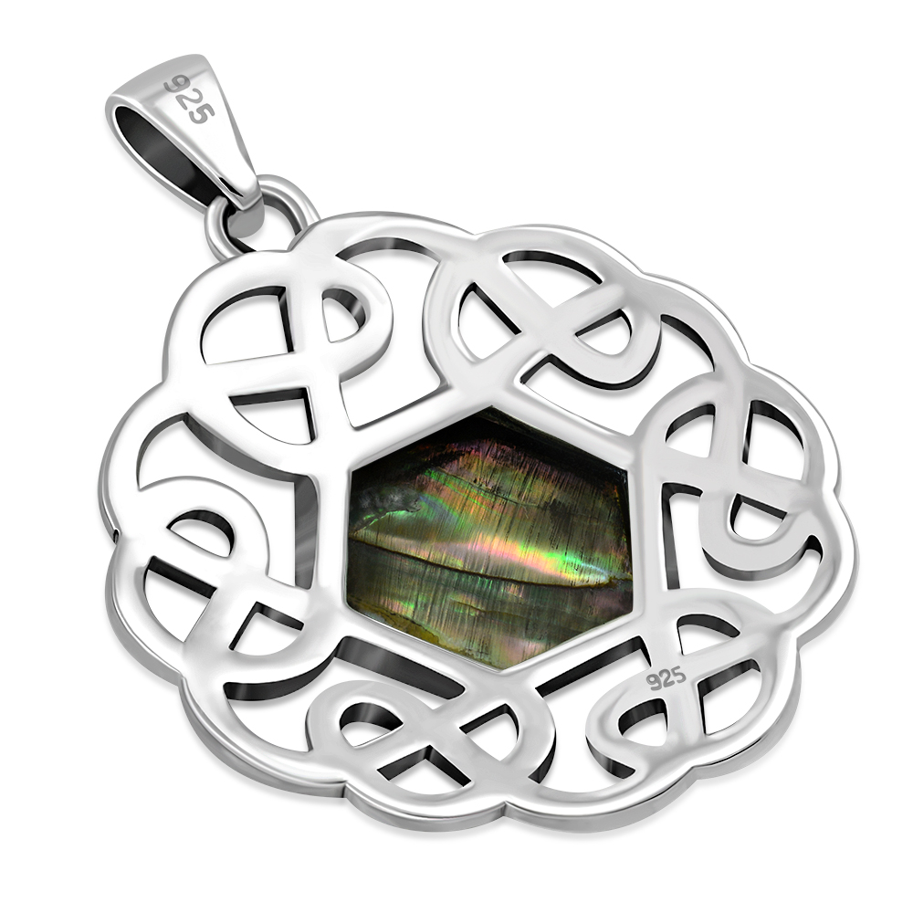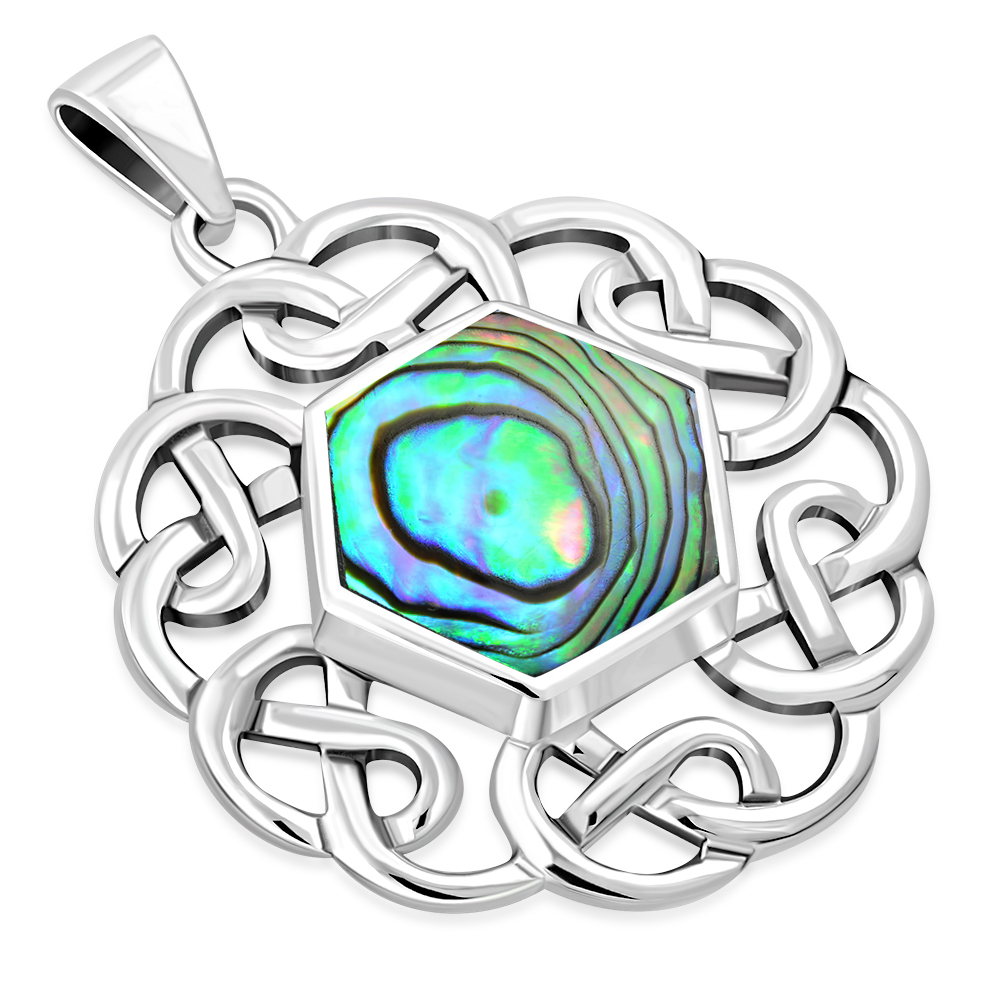 Abalone Shell Hexagon Celtic Knot Silver Pendant
