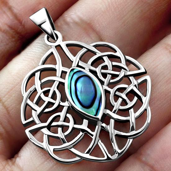 Abalone Shell Trinity Knot Silver Pendant
