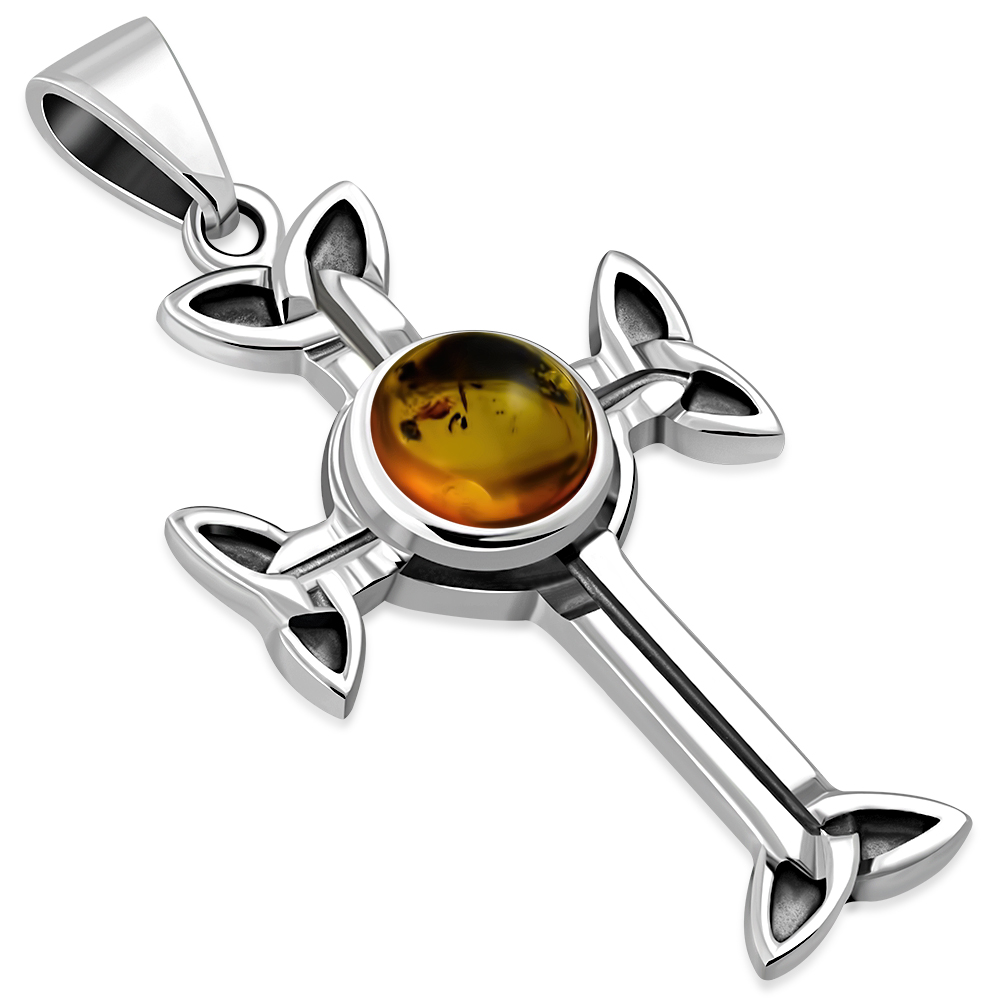 Theme: Amber Trinity Knot Cross Silver Pendant.