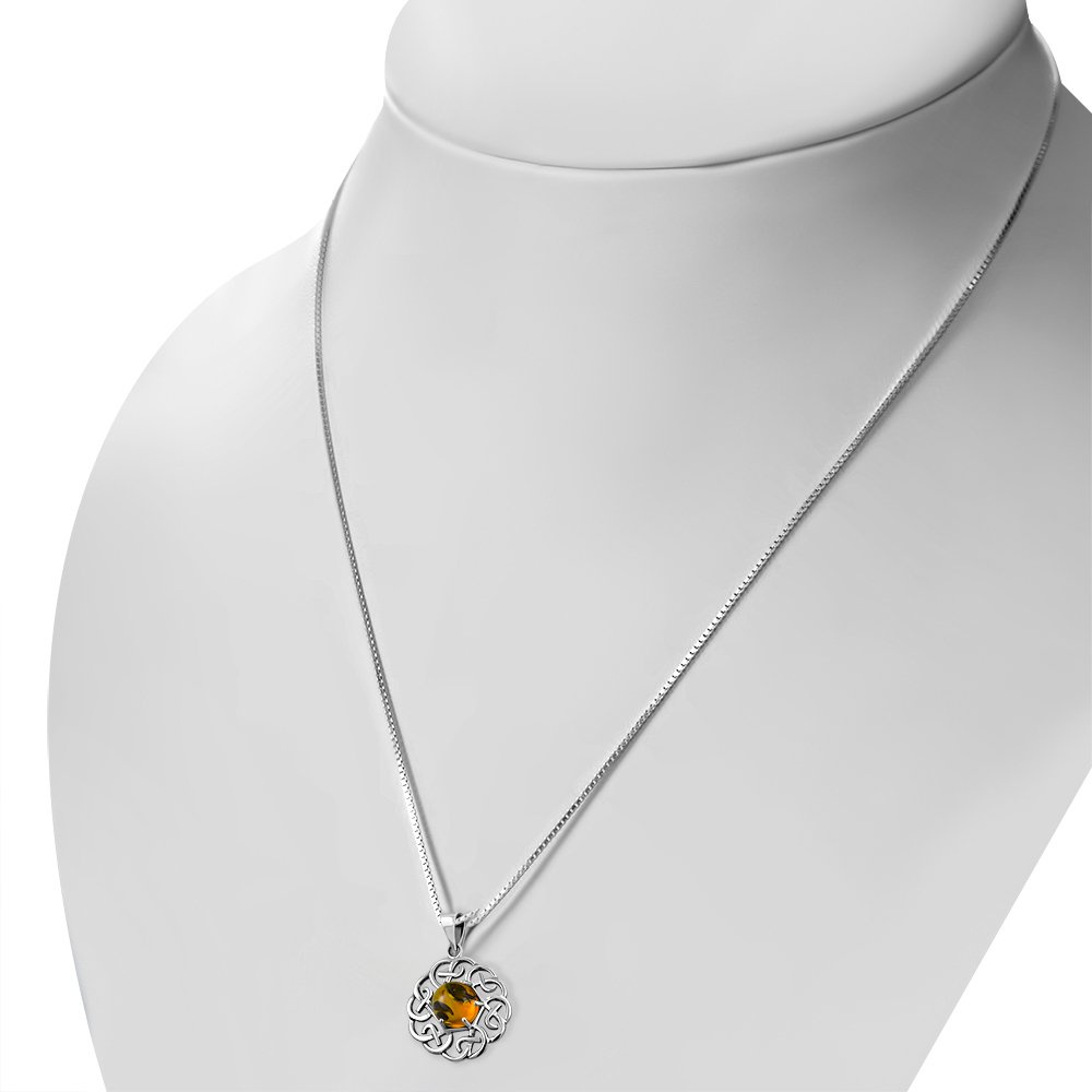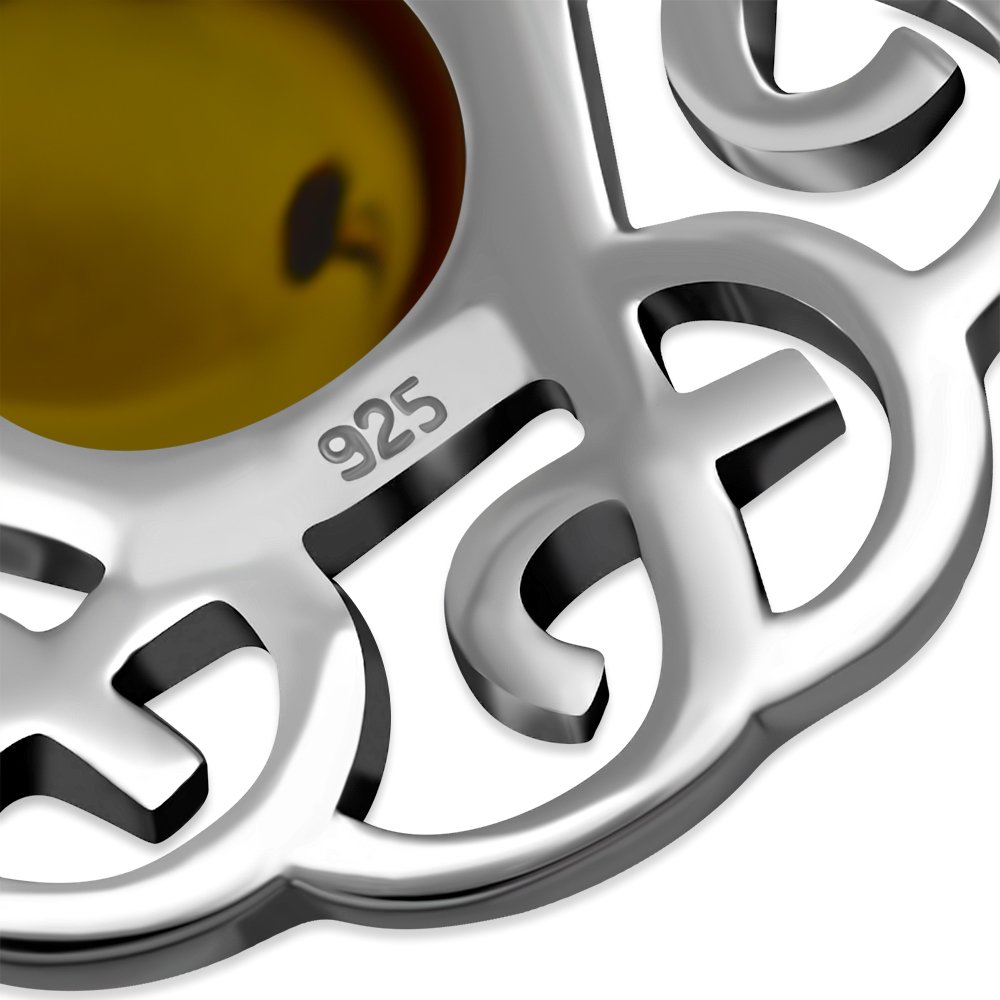 Theme: Amber Round Celtic Knot Silver Pendant.
