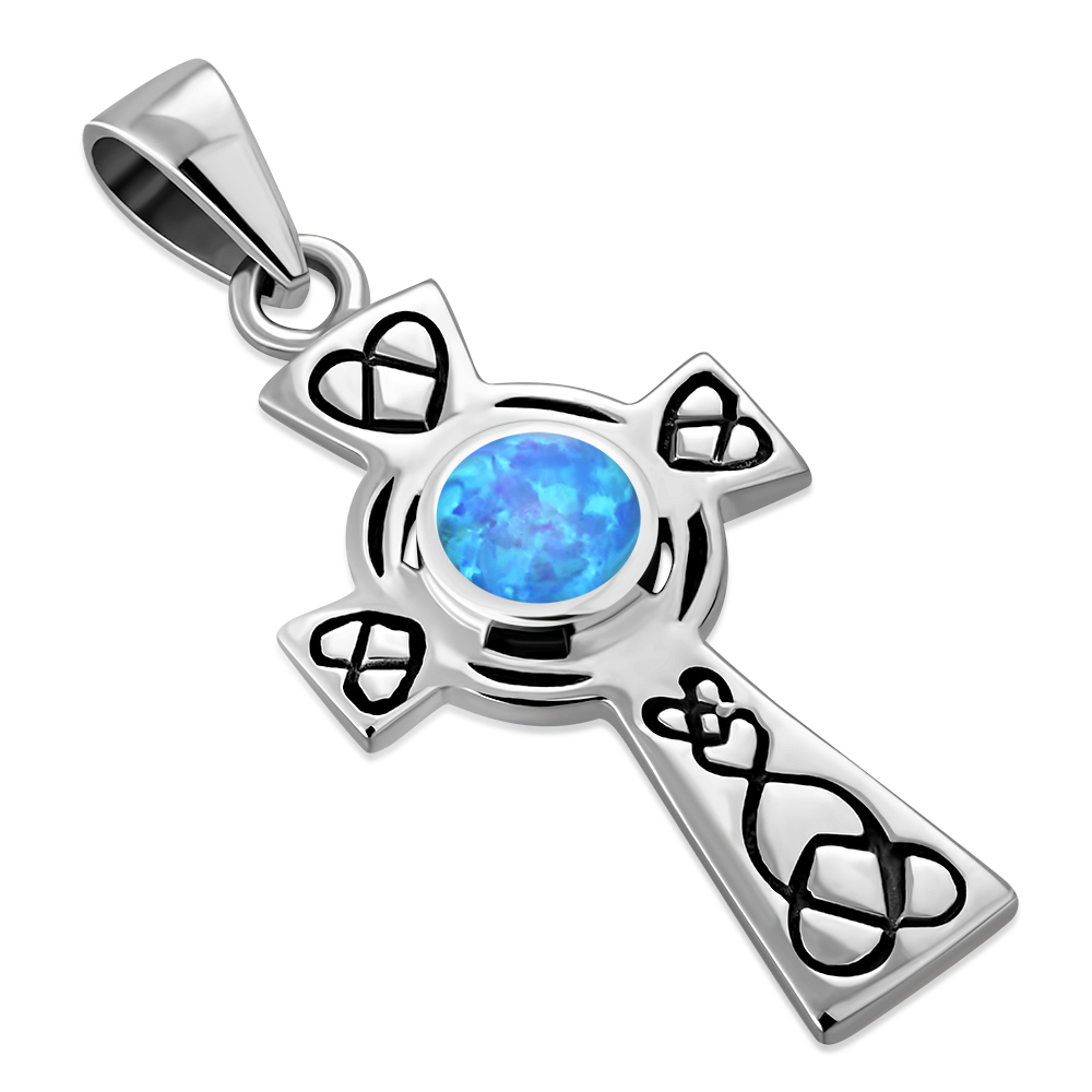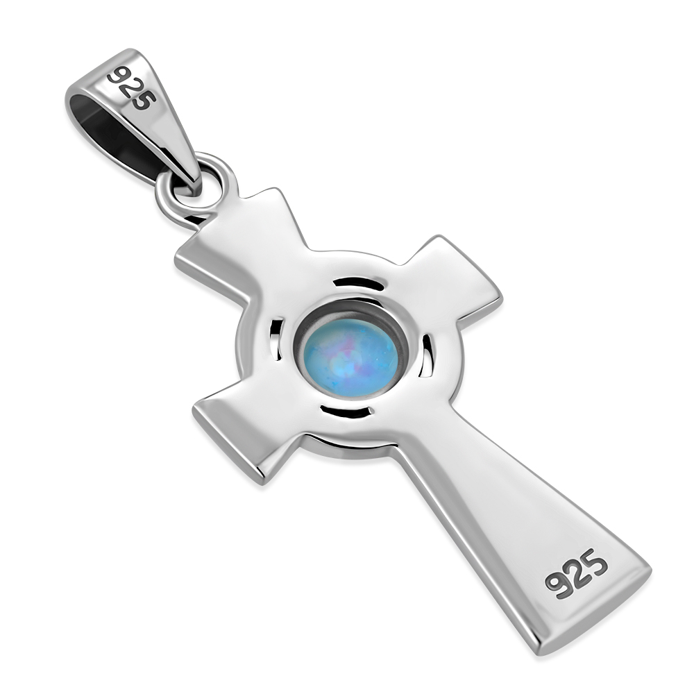 Theme: Synthetic Opal Celtic Cross Silver Pendant.