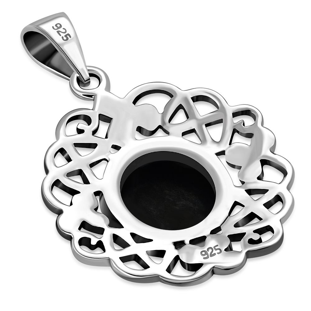 Black Onyx Celtic Knot Shamrock leaves Silver Pendant