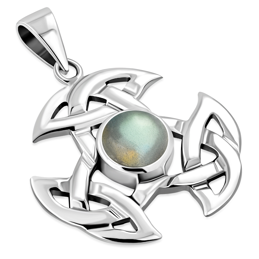 Celtic Silver Trinity Knot Pendant, set w/ Labradorite