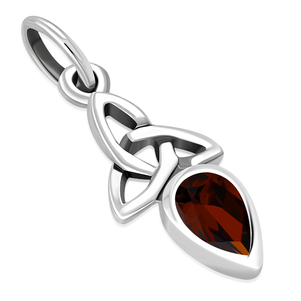 Theme: Garnet Stone Tiny Celtic Trinity Knot Silver Pendant.