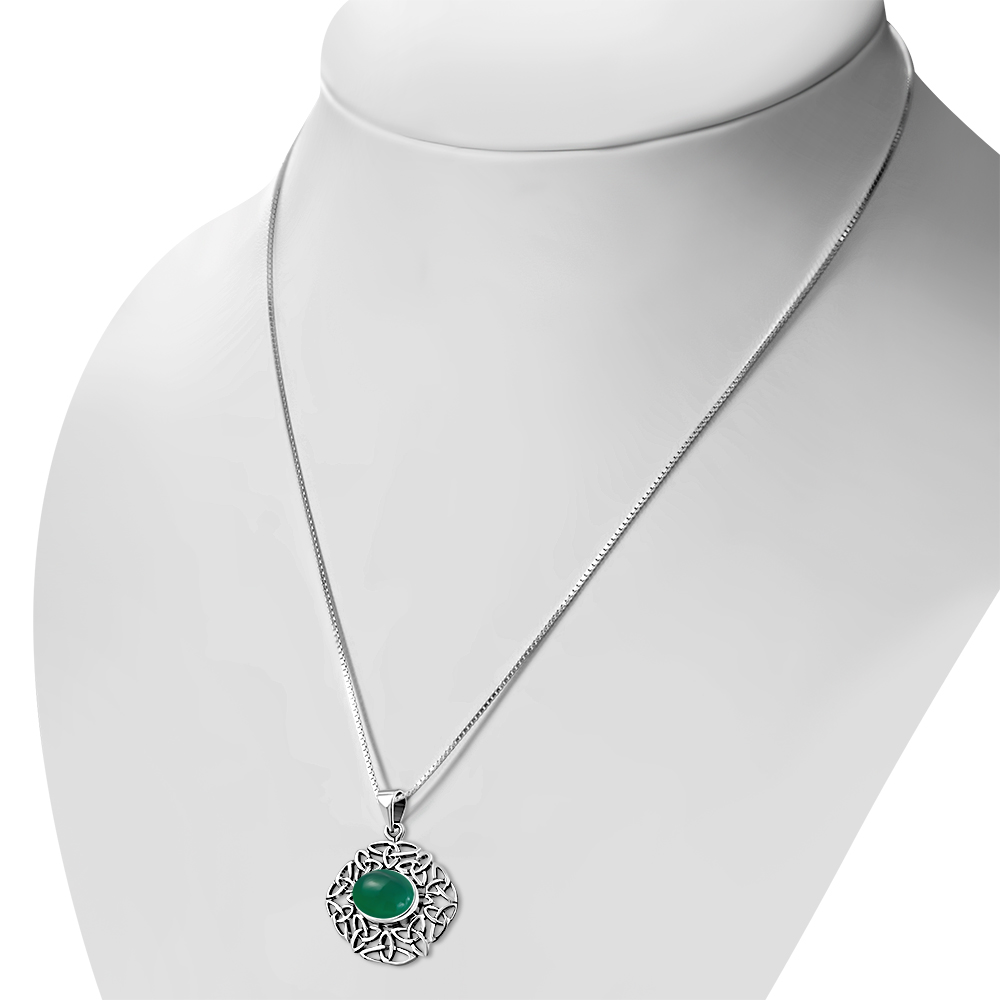 Green Agate Trinity Knots Silver Pendant