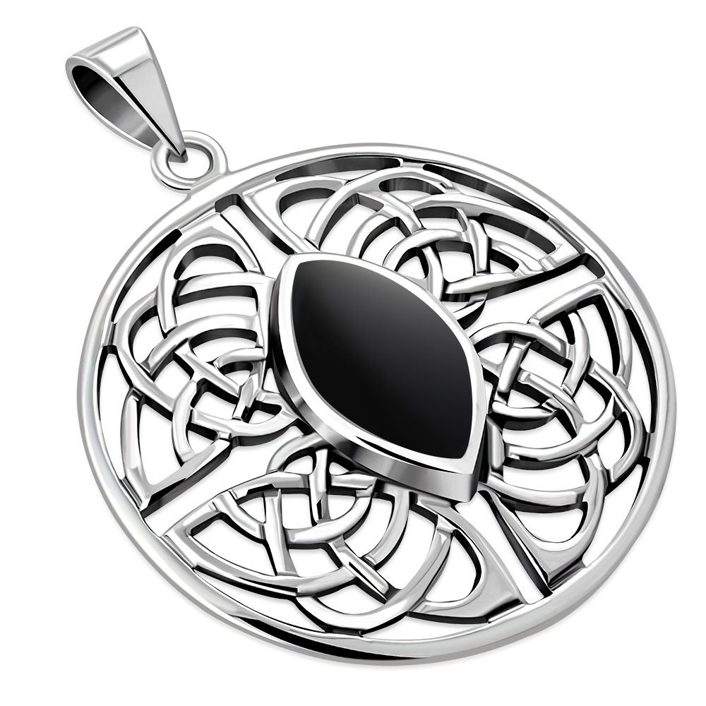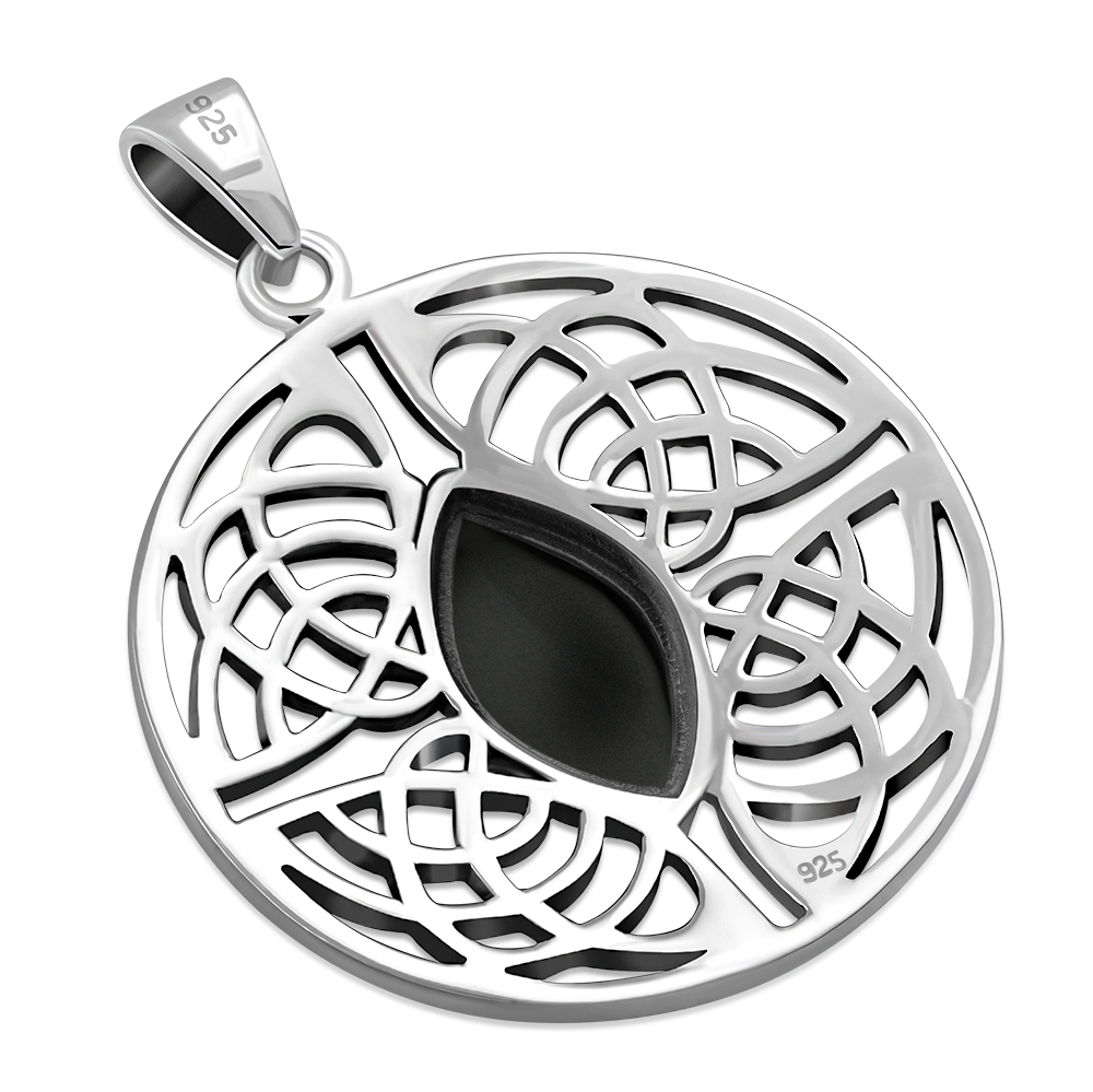 Large Round Celtic Silver Pendant w/ Black Onyx
