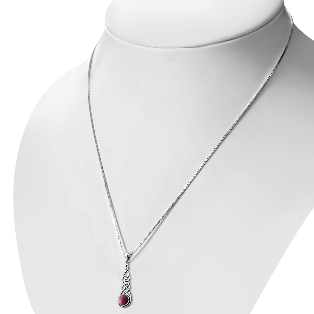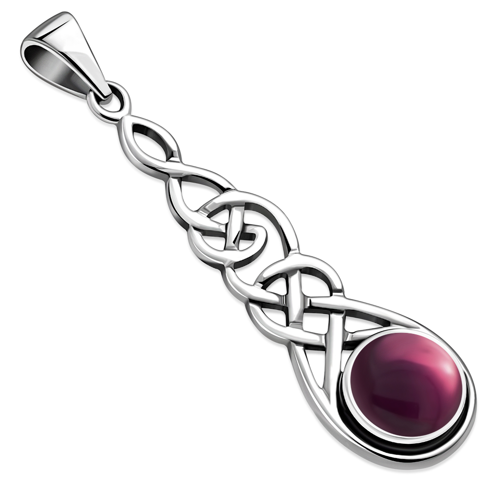 Garnet, Long Celtic Pendant w Amethyst, Celtic Knot Pendant w Amber,