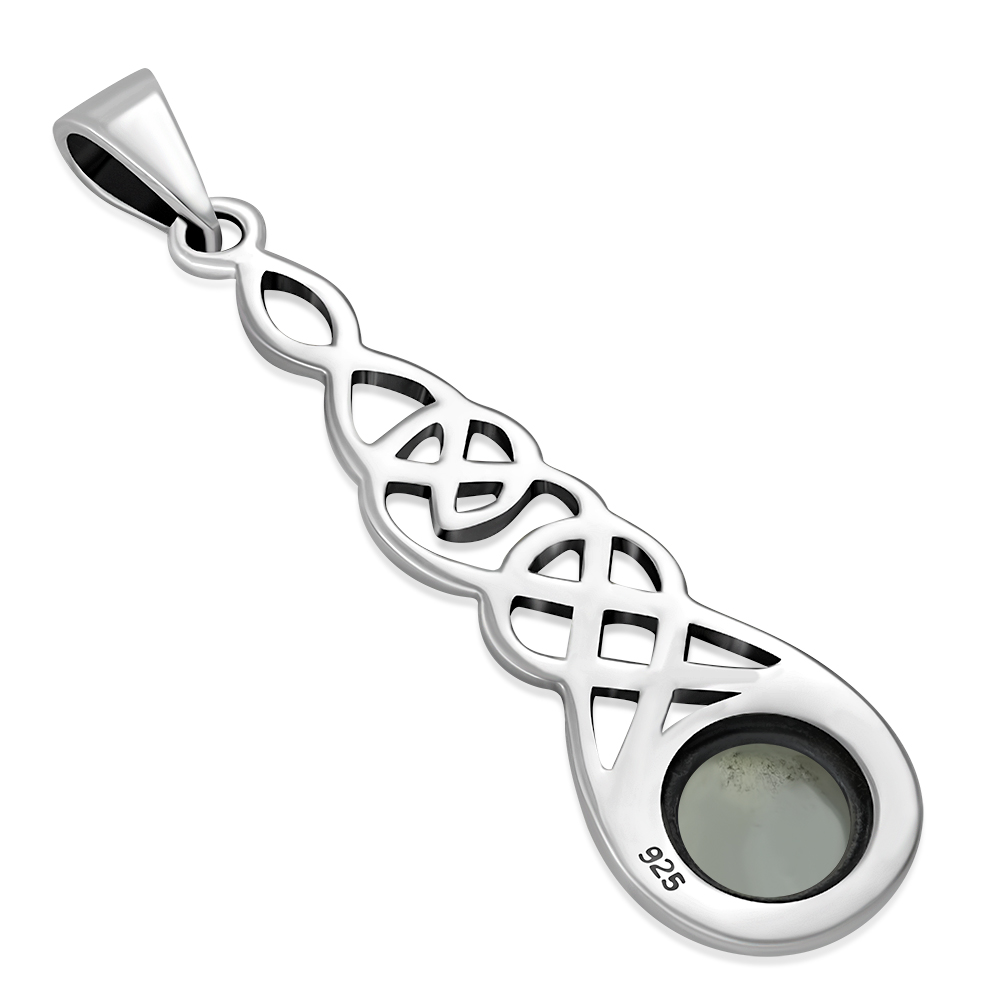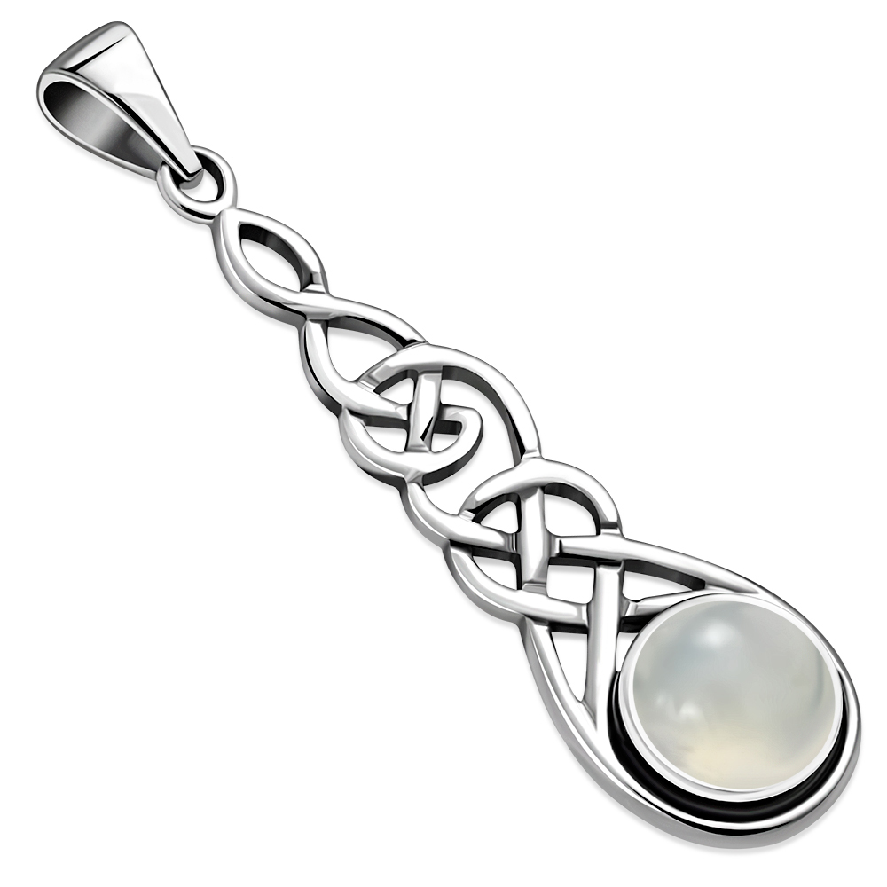 Theme: Long Celtic Pendant w Rainbow Moon Stone.