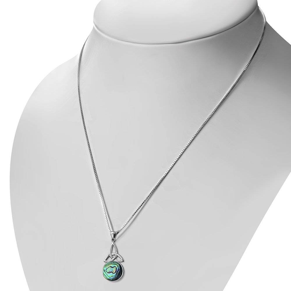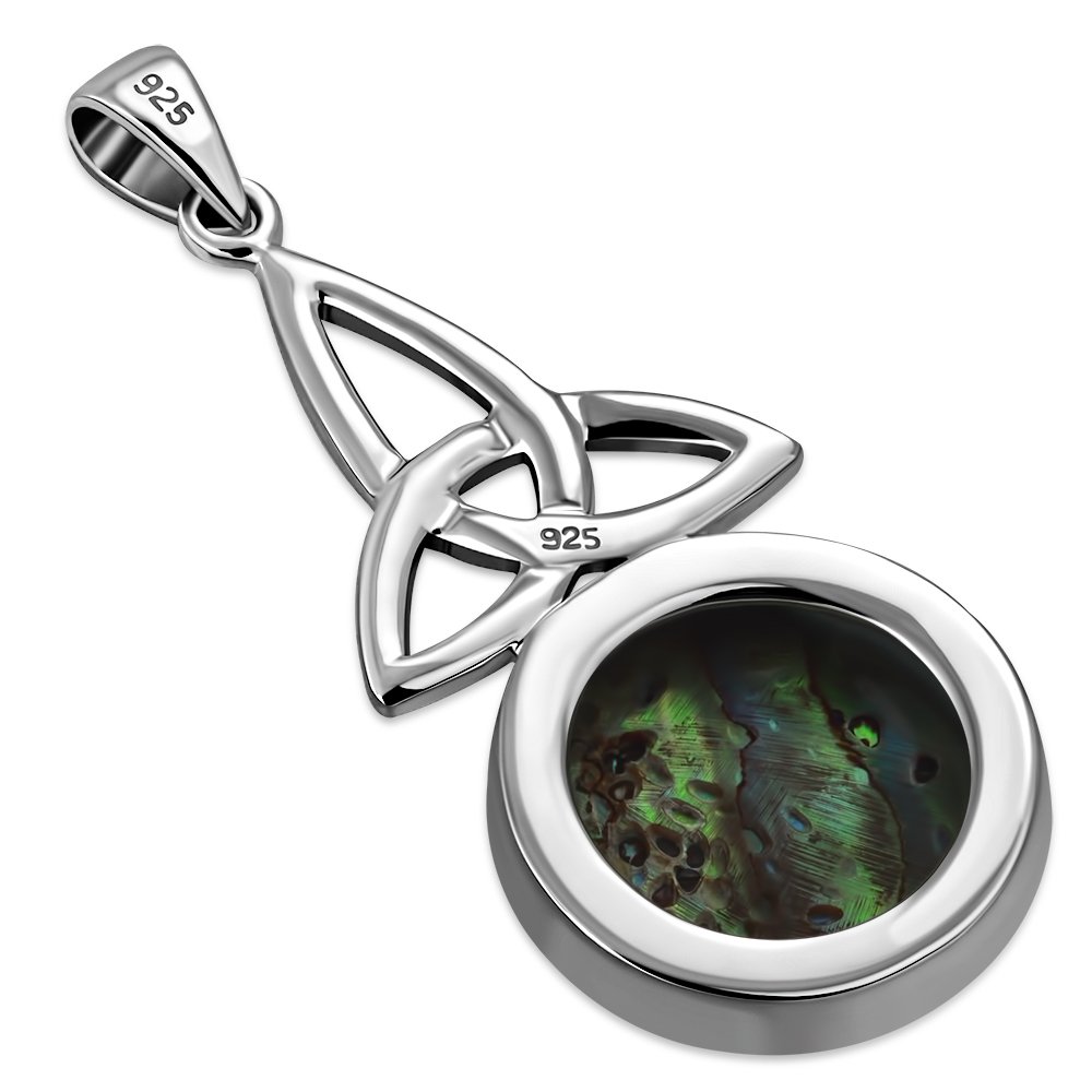 Theme: Long Celtic Trinity Knot Abalone Shell Silver Pendant.