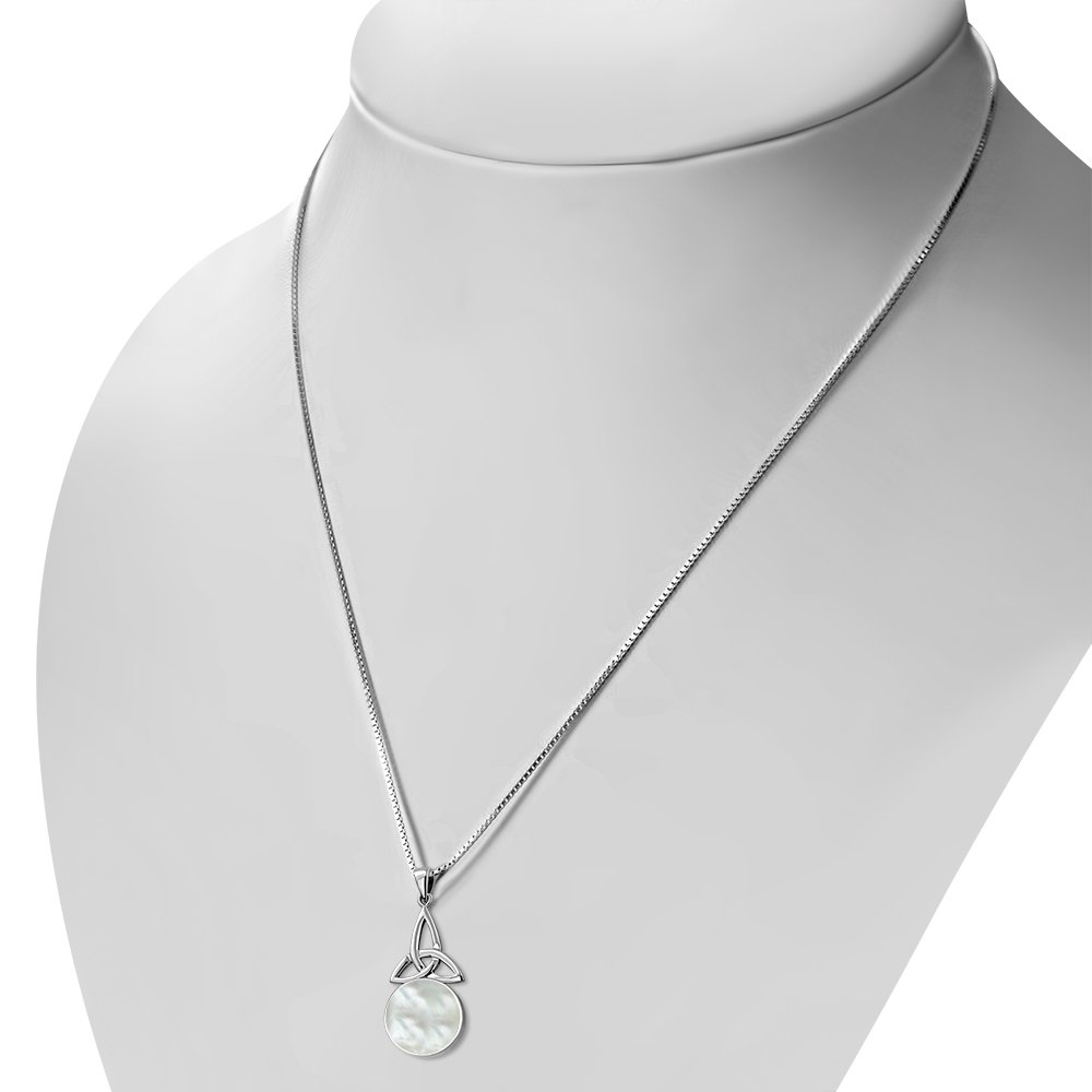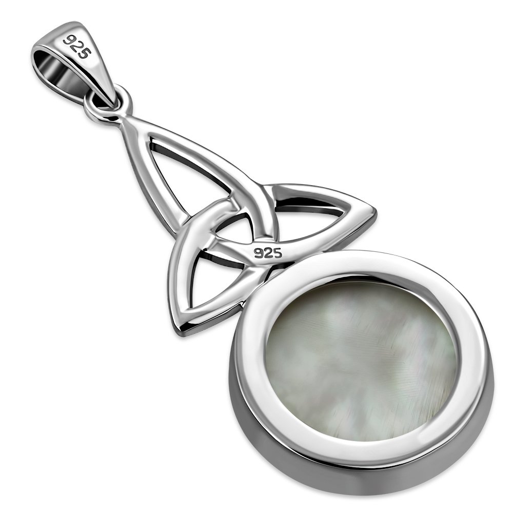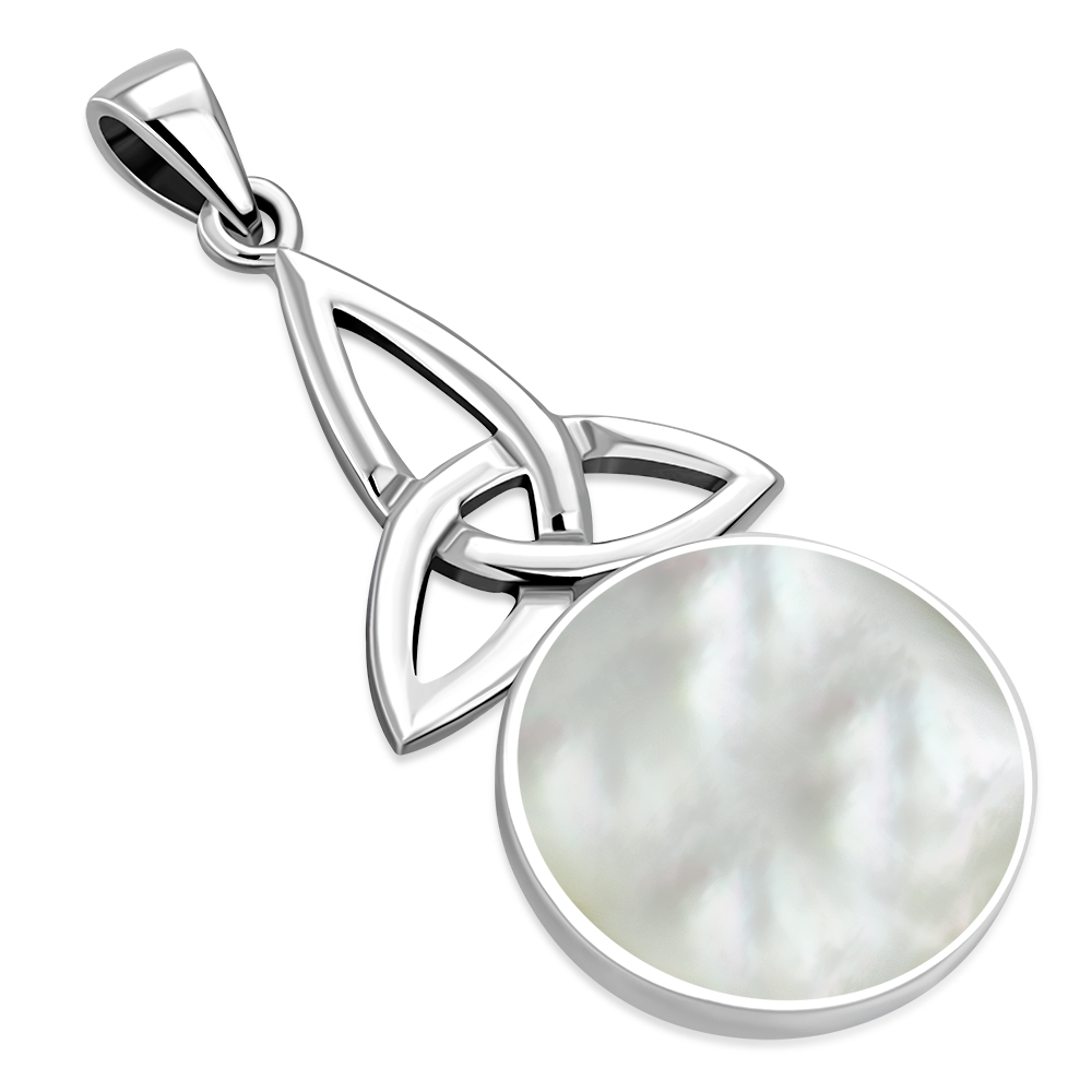Theme: Long Trinity Knot Mother of Pearl Silver Pendant.