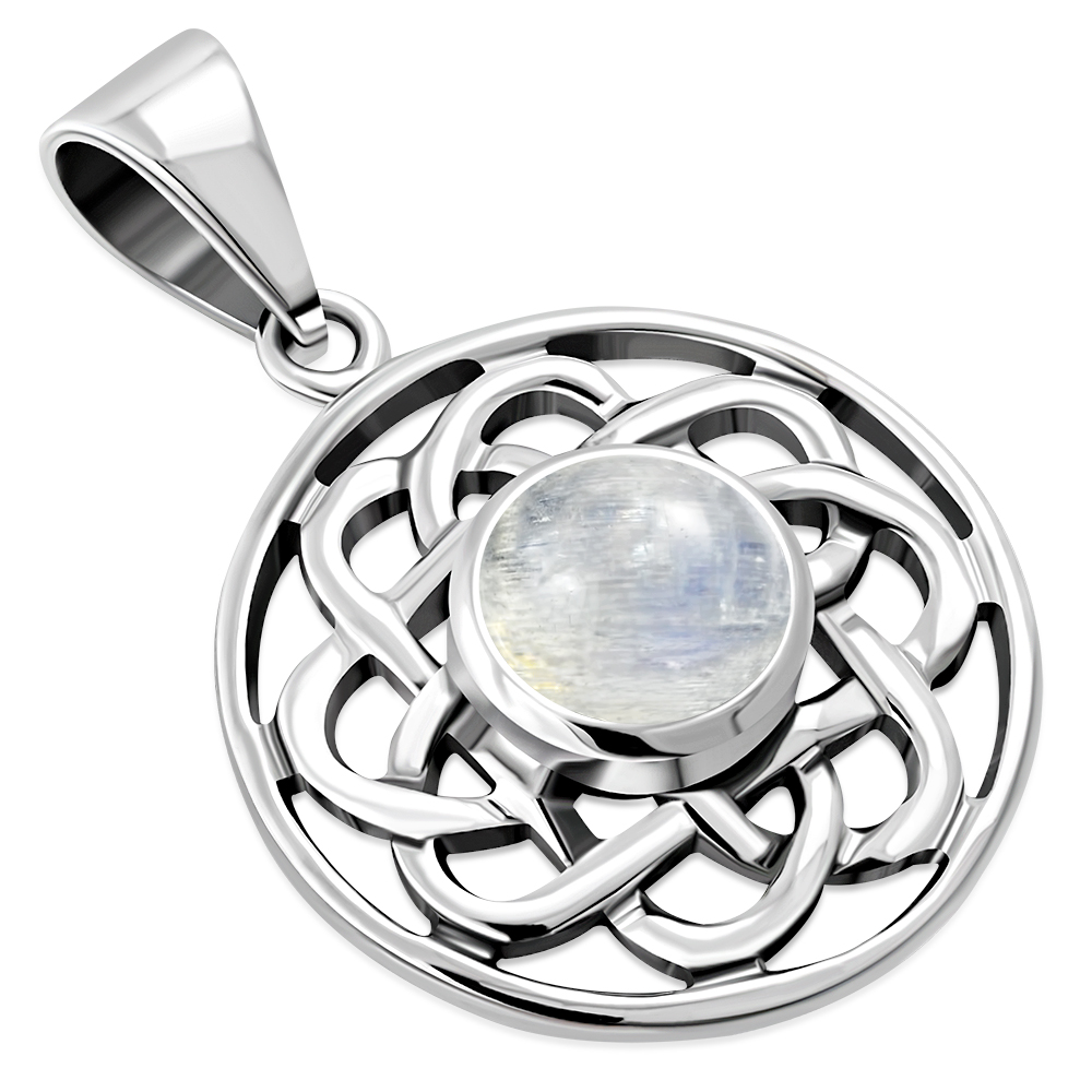 Pendant, Rainbow Moon Stone Celtic Round Silver Pendant.