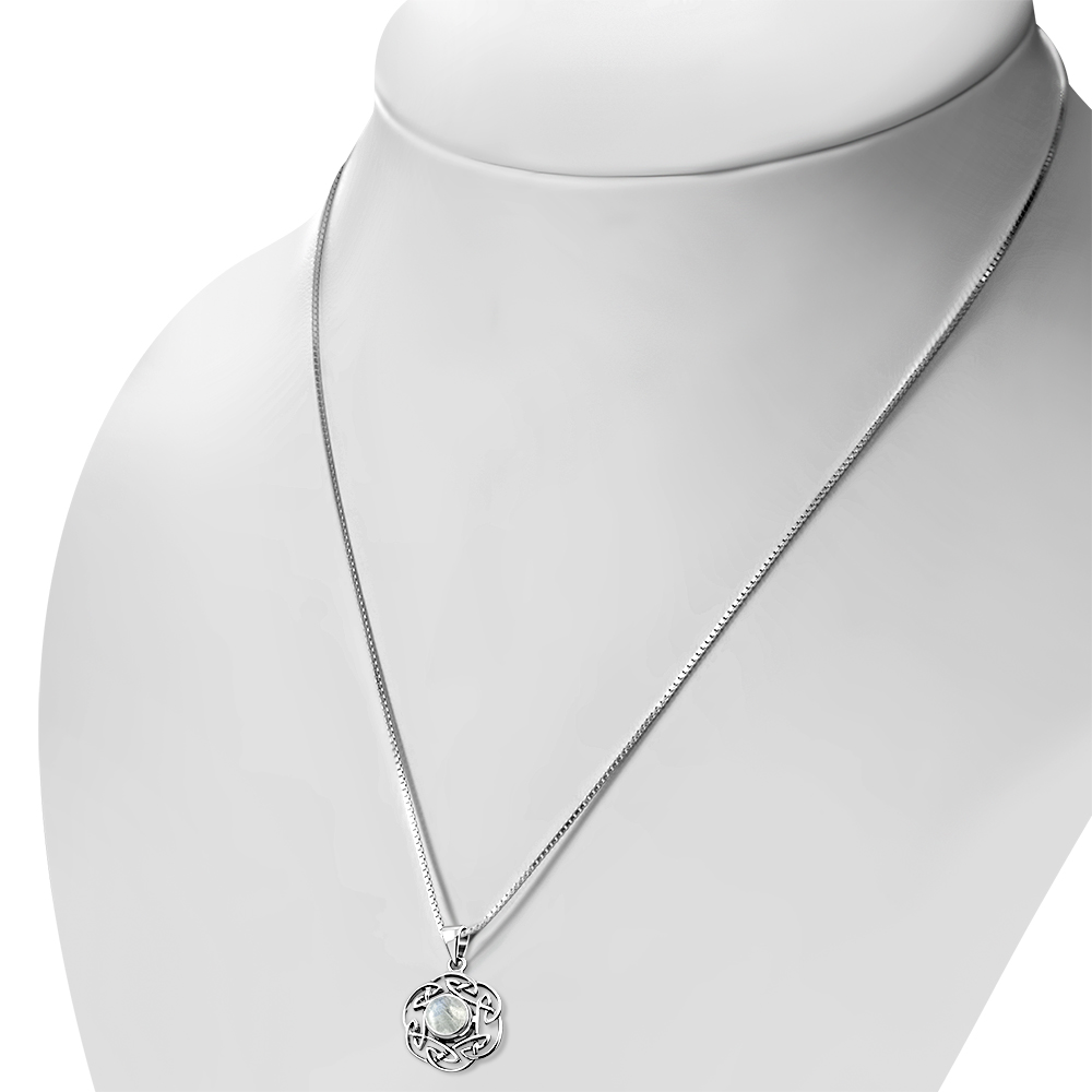 Rainbow Moonstone Round Celtic Knot Silver Pendant