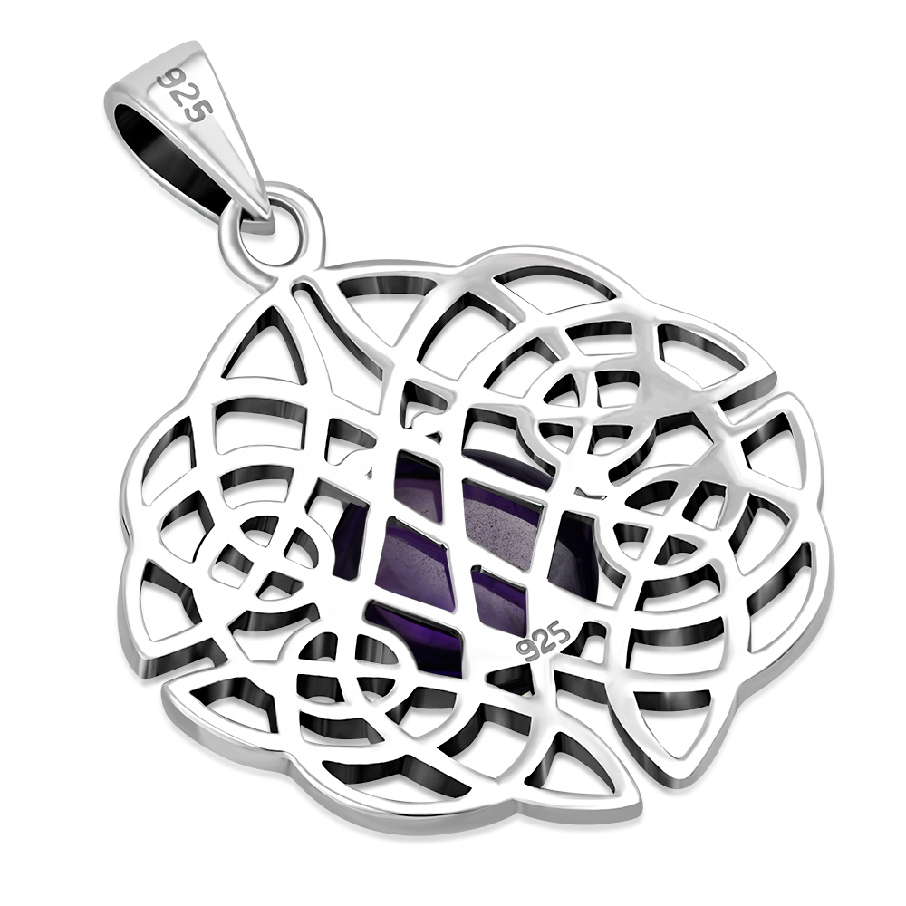 Round Celtic Knot Silver Pendant set w/ Amethyst