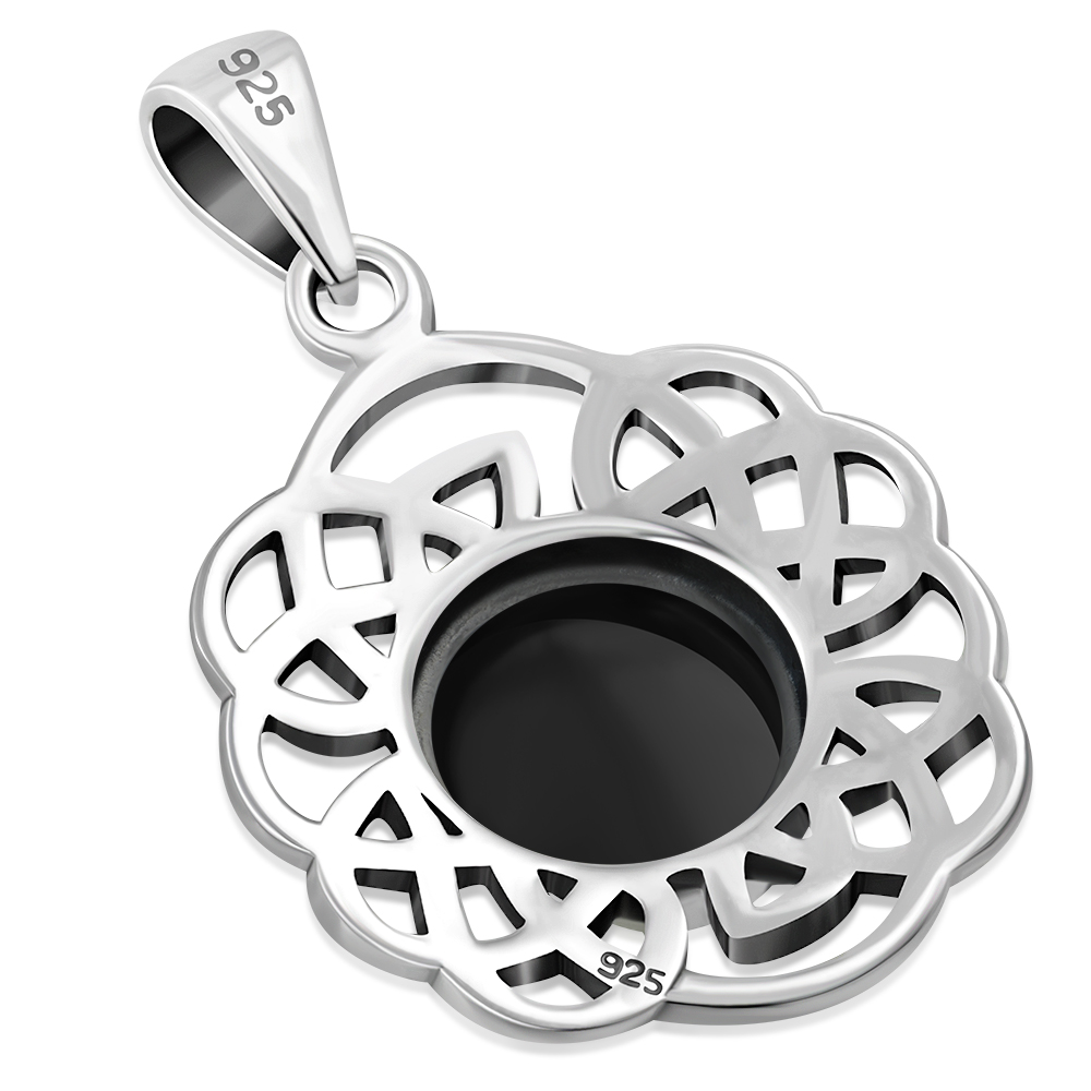Round Celtic Knot Silver Pendant set w/ Black Onyx