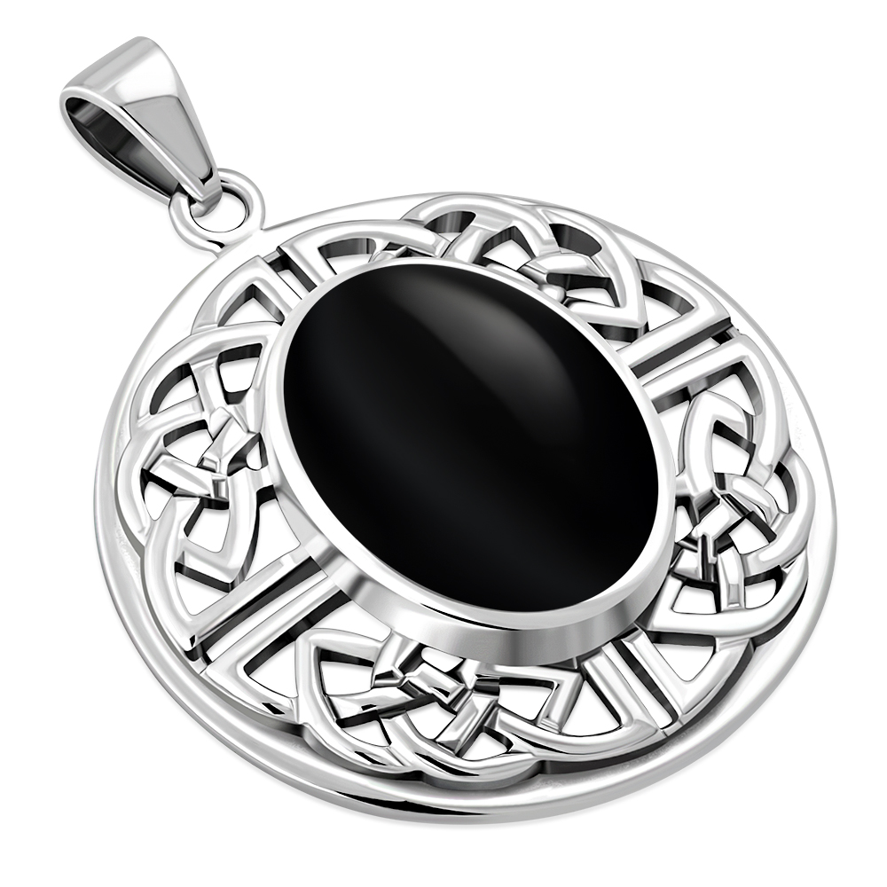 Theme: Round Celtic Knot Silver Pendant w/ Black Onyx.