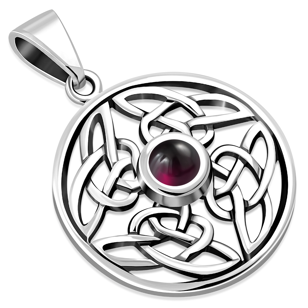 Jewelry, as: Round Garnet Celtic Knot Silver Pendant, Round Celtic