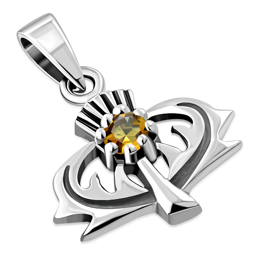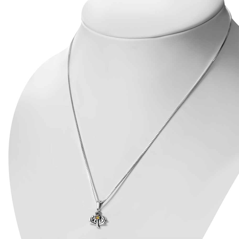 as: Tiny Silver Thistle Pendant set w/ Faceted Citrine, Sterling Silver