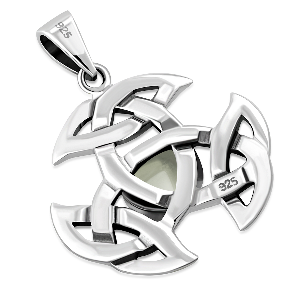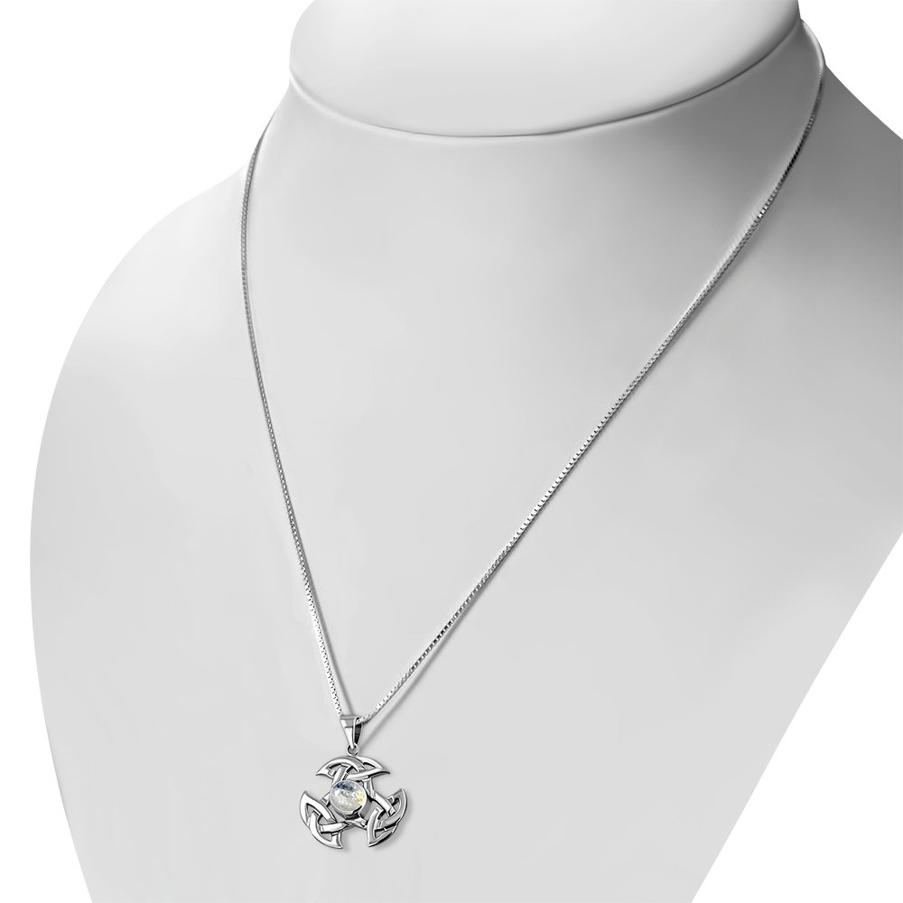 Silver Trinity Knot Pendant, set w/ Rainbow Moonstone