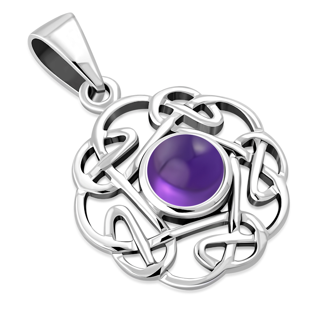 Small Amethyst Stone Round Celtic Knot Silver Pendant