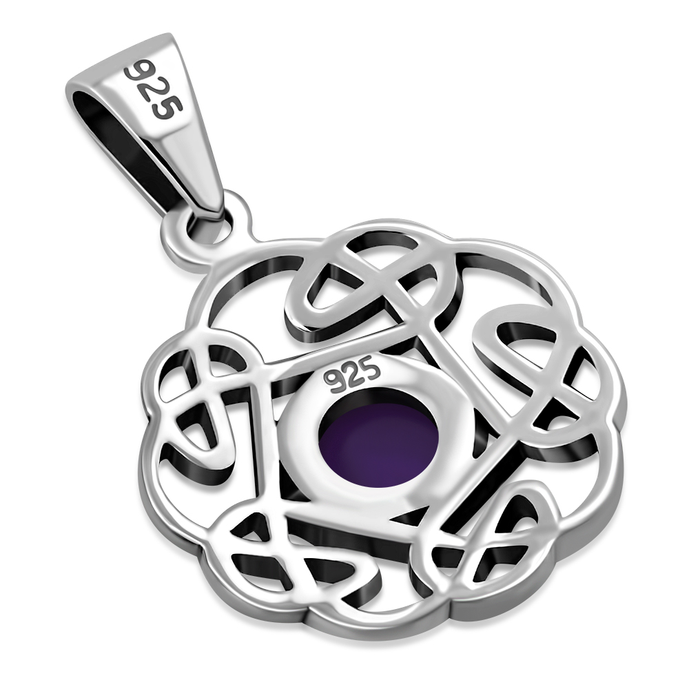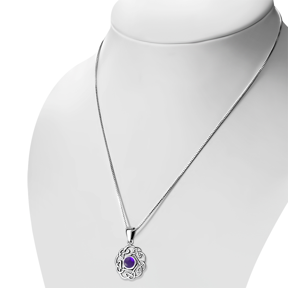 Theme: Small Amethyst Stone Celtic Knot Silver Pendant.