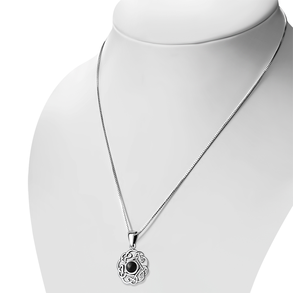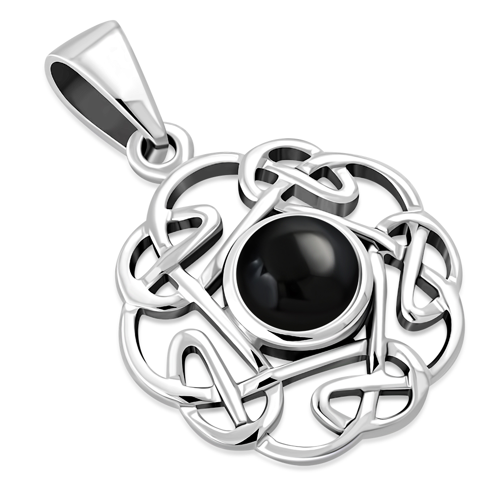 Small Black Onyx Round Celtic Knot Silver Pendant
