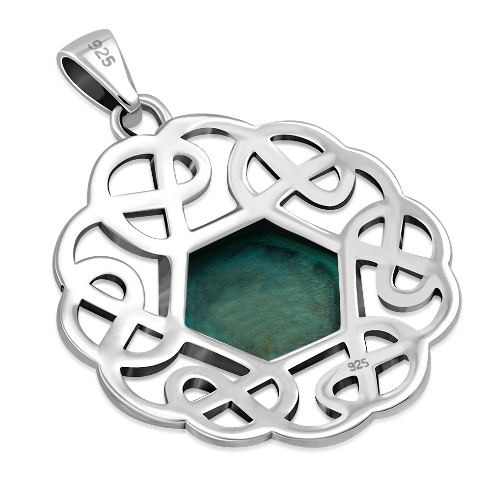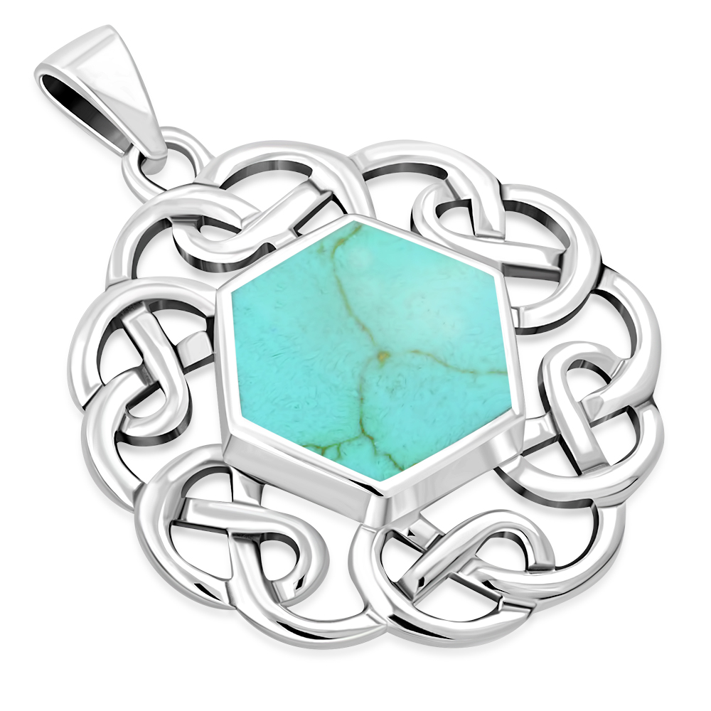 Turquoise Hexagon Celtic Knot Silver Pendant
