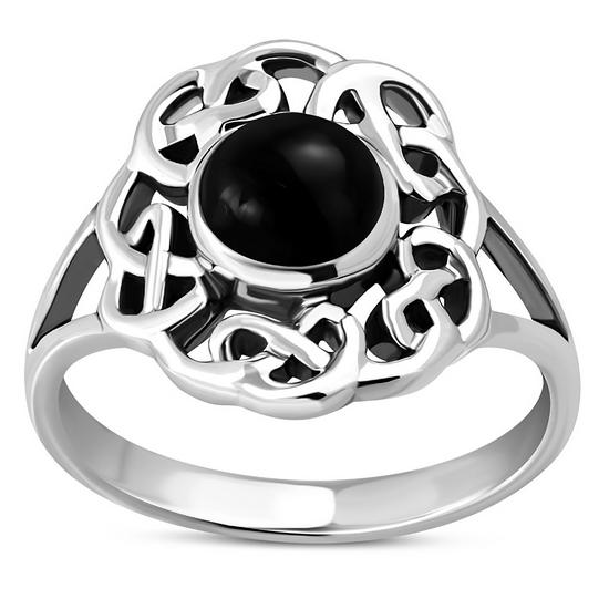 Black Onyx Round Celtic Knot Silver Ring, r533
