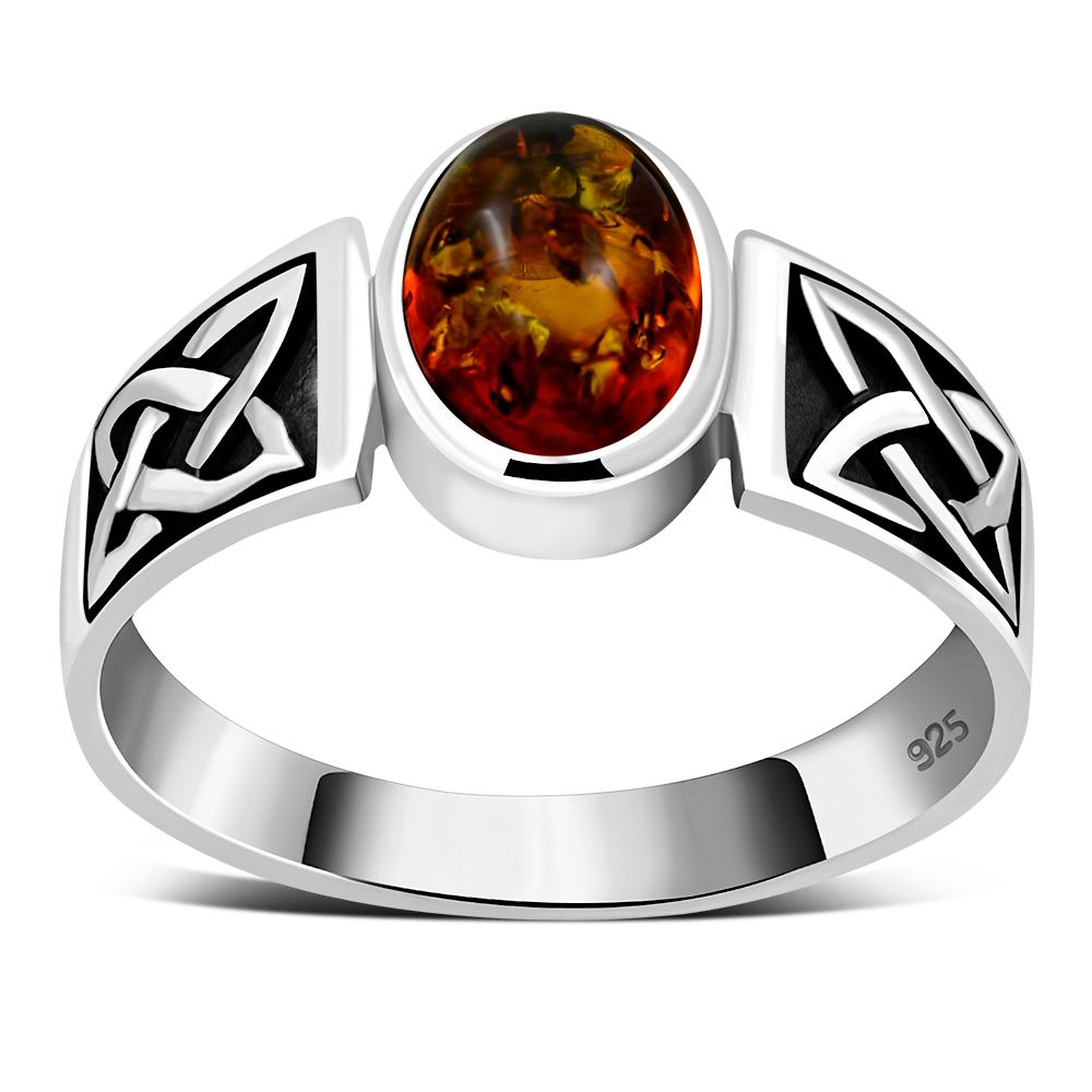 Theme: Celtic Baltic Amber Sterling Silver Ring.