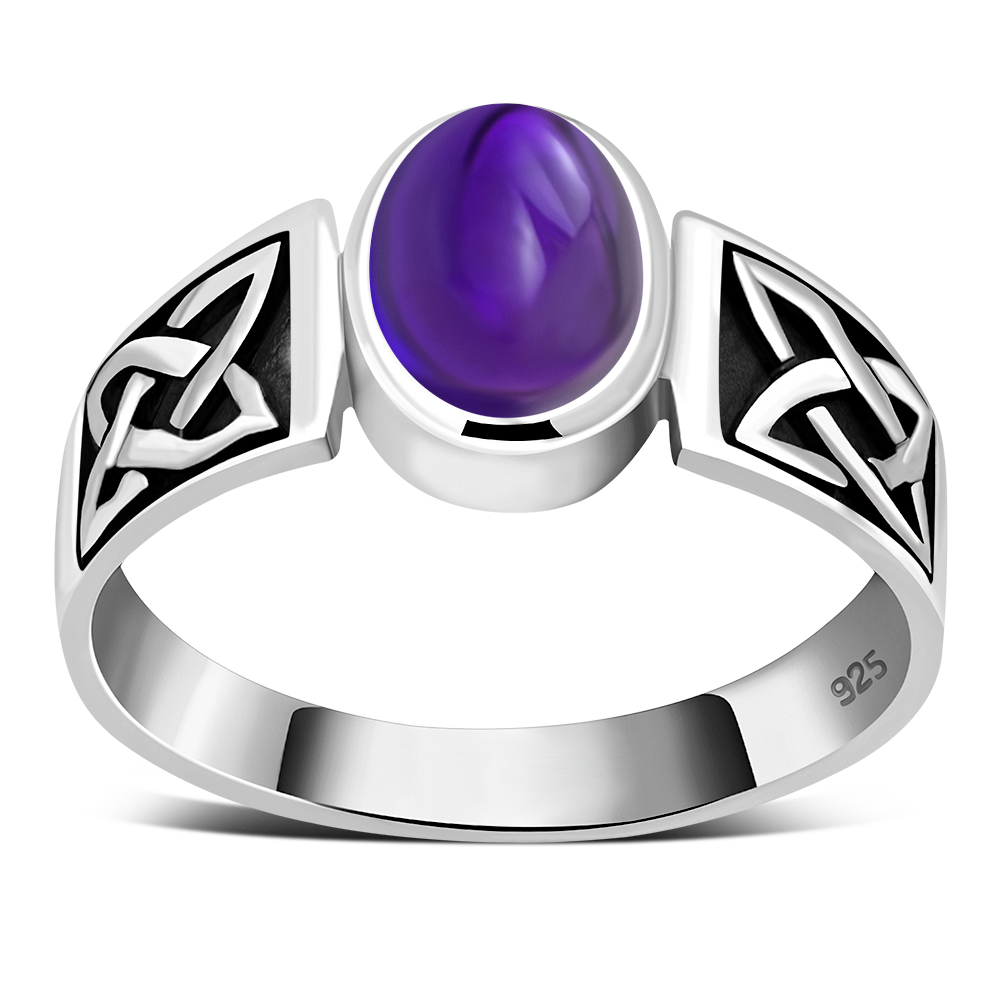 Theme: Celtic Amethyst Stone Sterling Silver Ring.