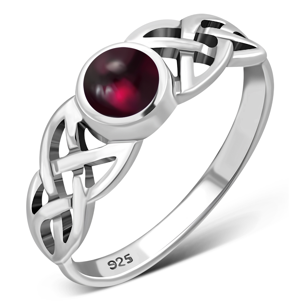 Theme: Celtic Knot Garnet Stone Silver Ring.