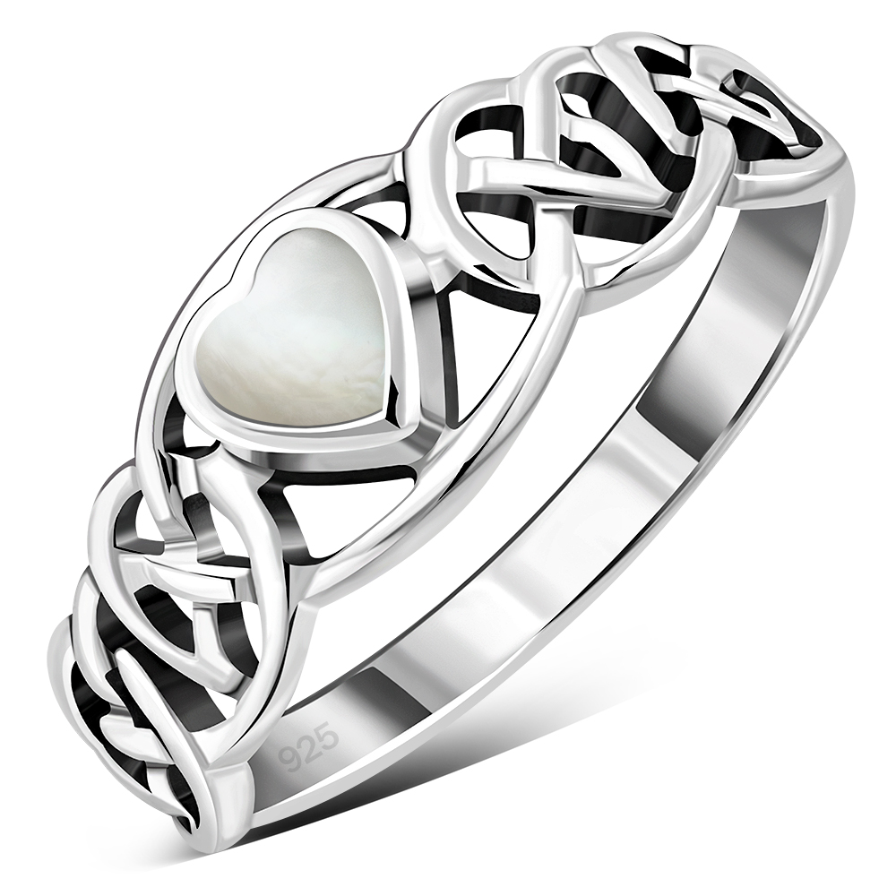 Jewelry as: Celtic Knot Mother of Pearl Heart Silver Ring, Celtic Knot