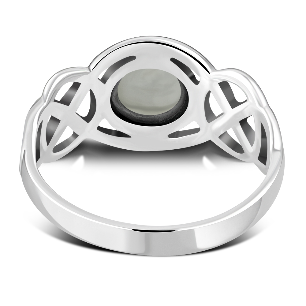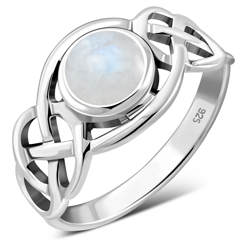 Theme: Celtic Knot Sterling Silver Rainbow Moonstone Ring.