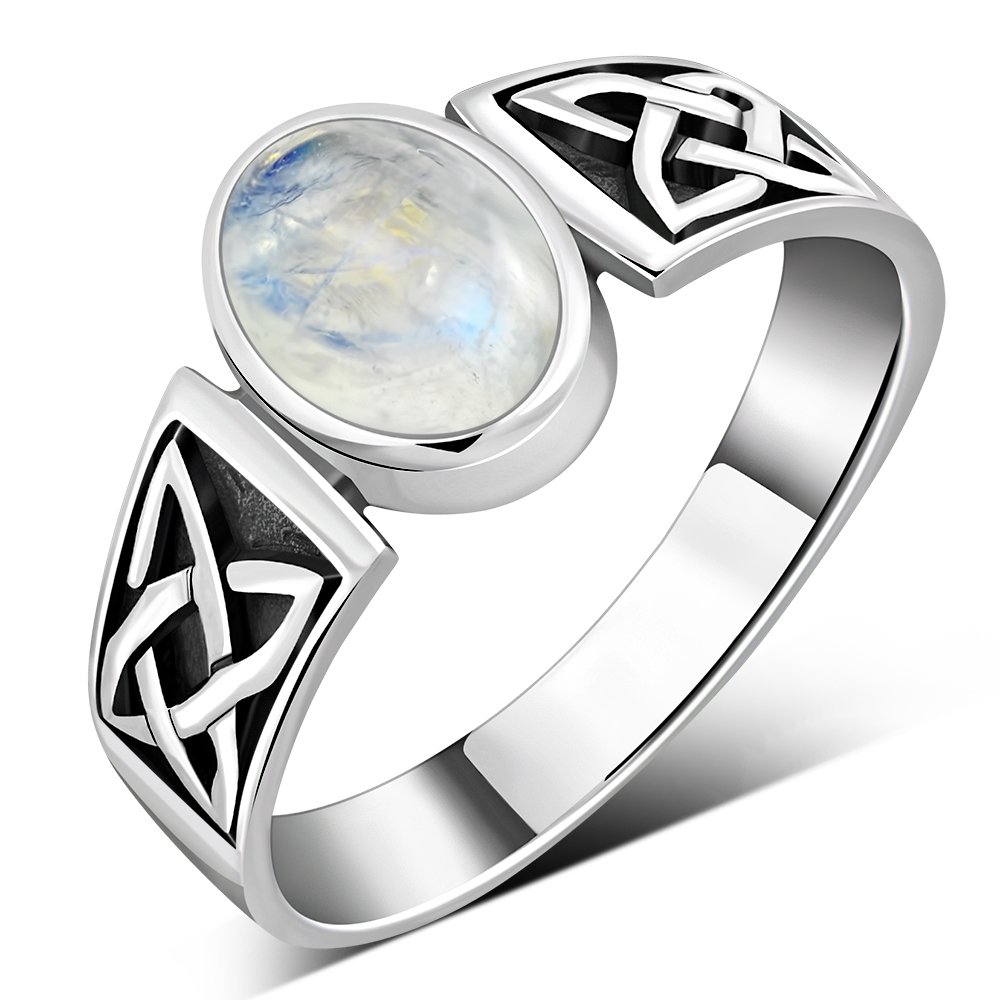 Celtic Rainbow Moonstone Sterling Silver Ring