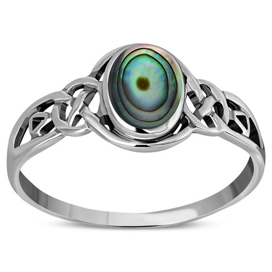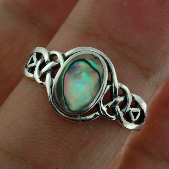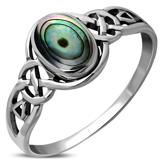 Celtic Stone Ring w Abalone, 925 Silver, r464
