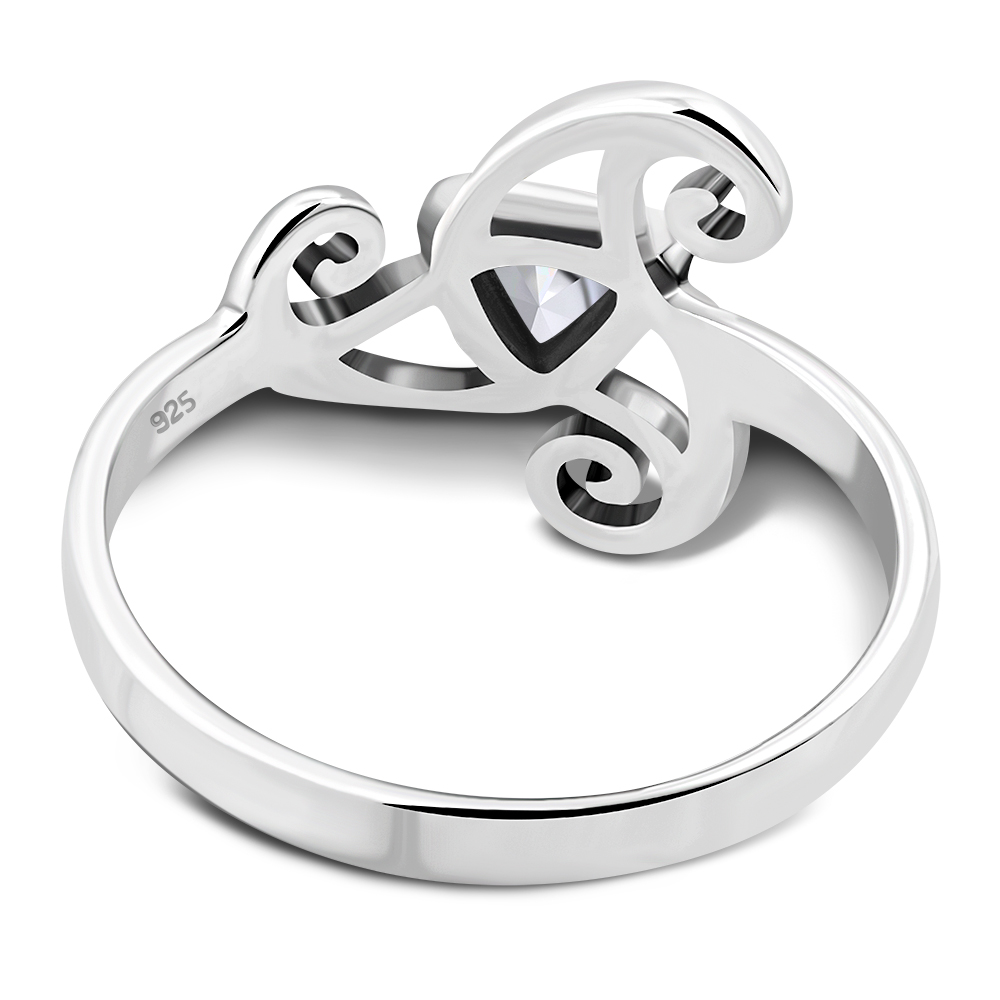 Clear CZ Triskelion / Triskele Triple Spiral Silver Ring