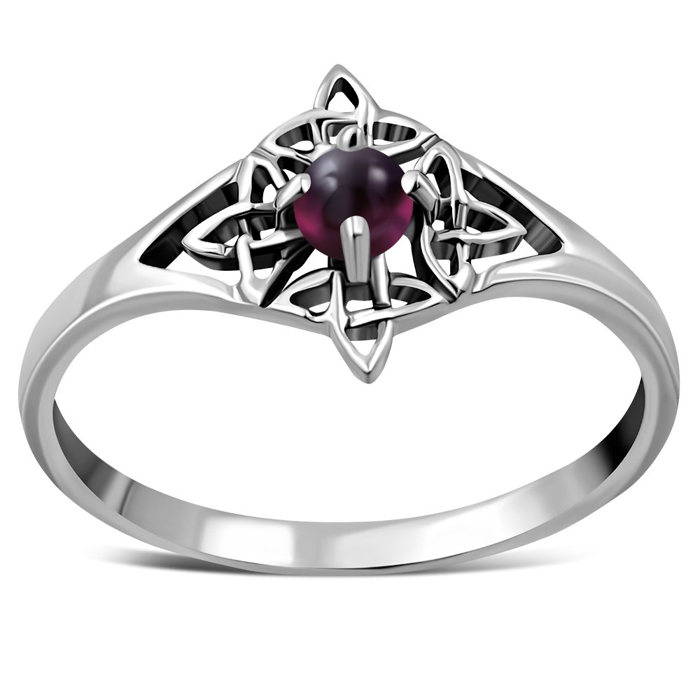 Theme: Delicate Garnet Celtic Knot Silver Ring.
