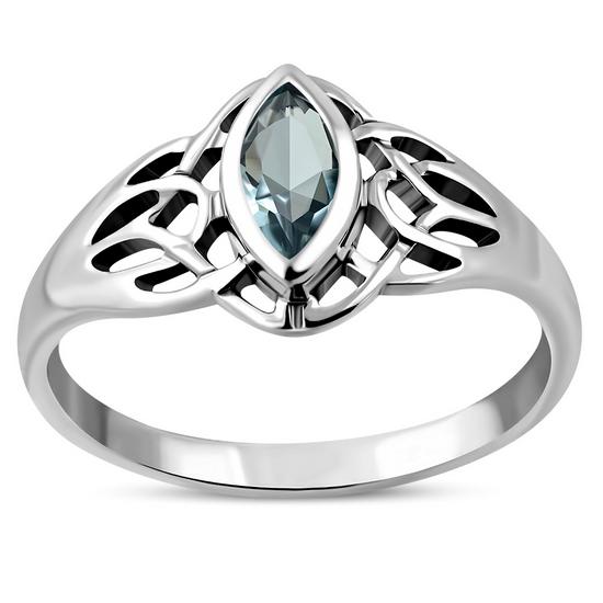 Celtic Knot Blue Topaz CZ Silver Ring.