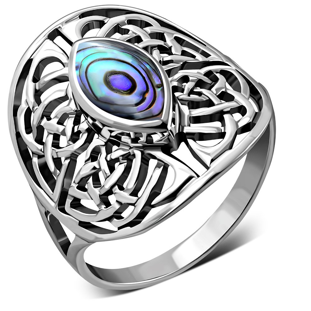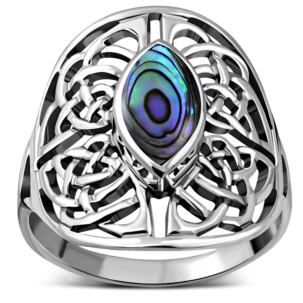 Large Abalone Shell Celtic Knot Silver Ring, r560