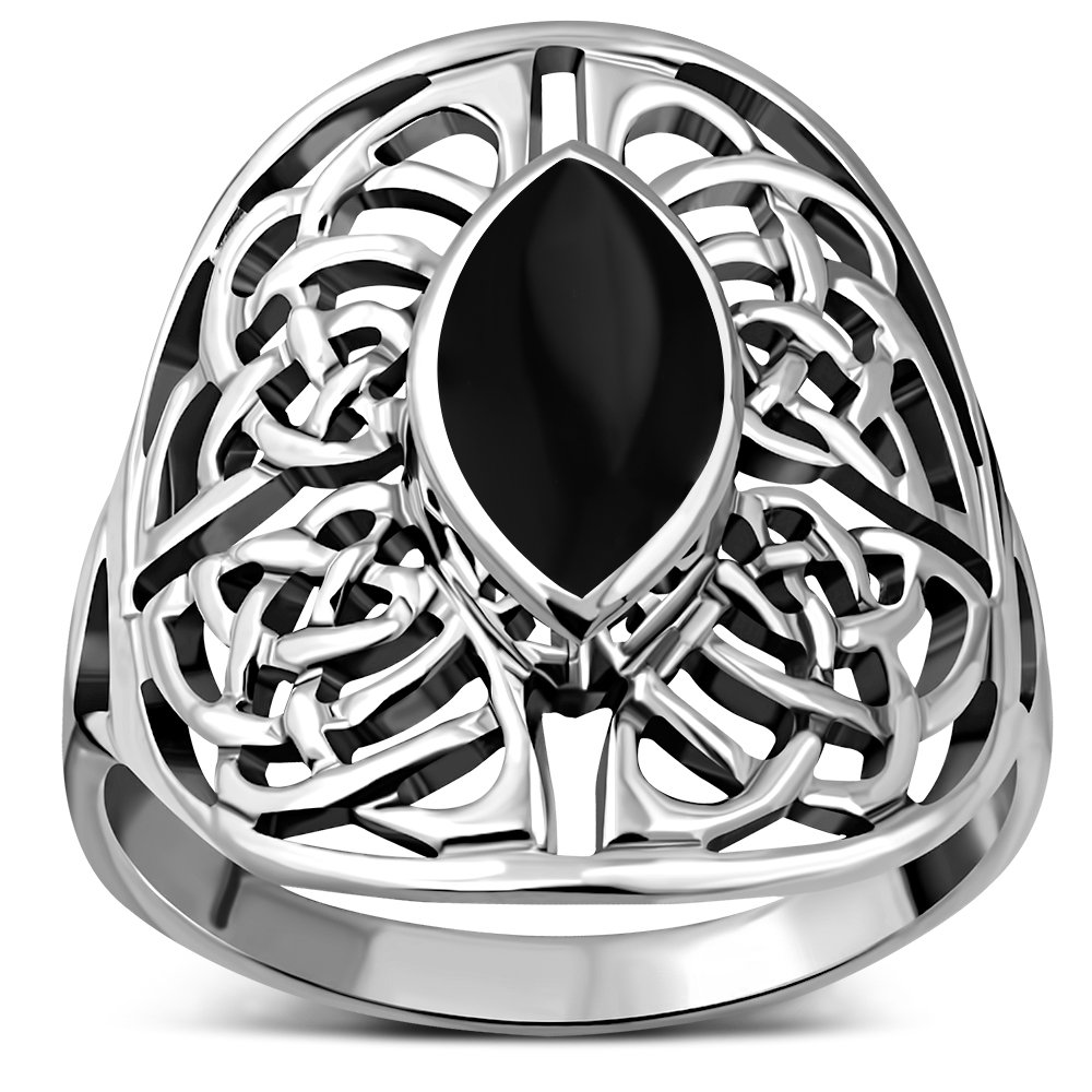 Large Black Onyx Celtic Knot Silver Ring.