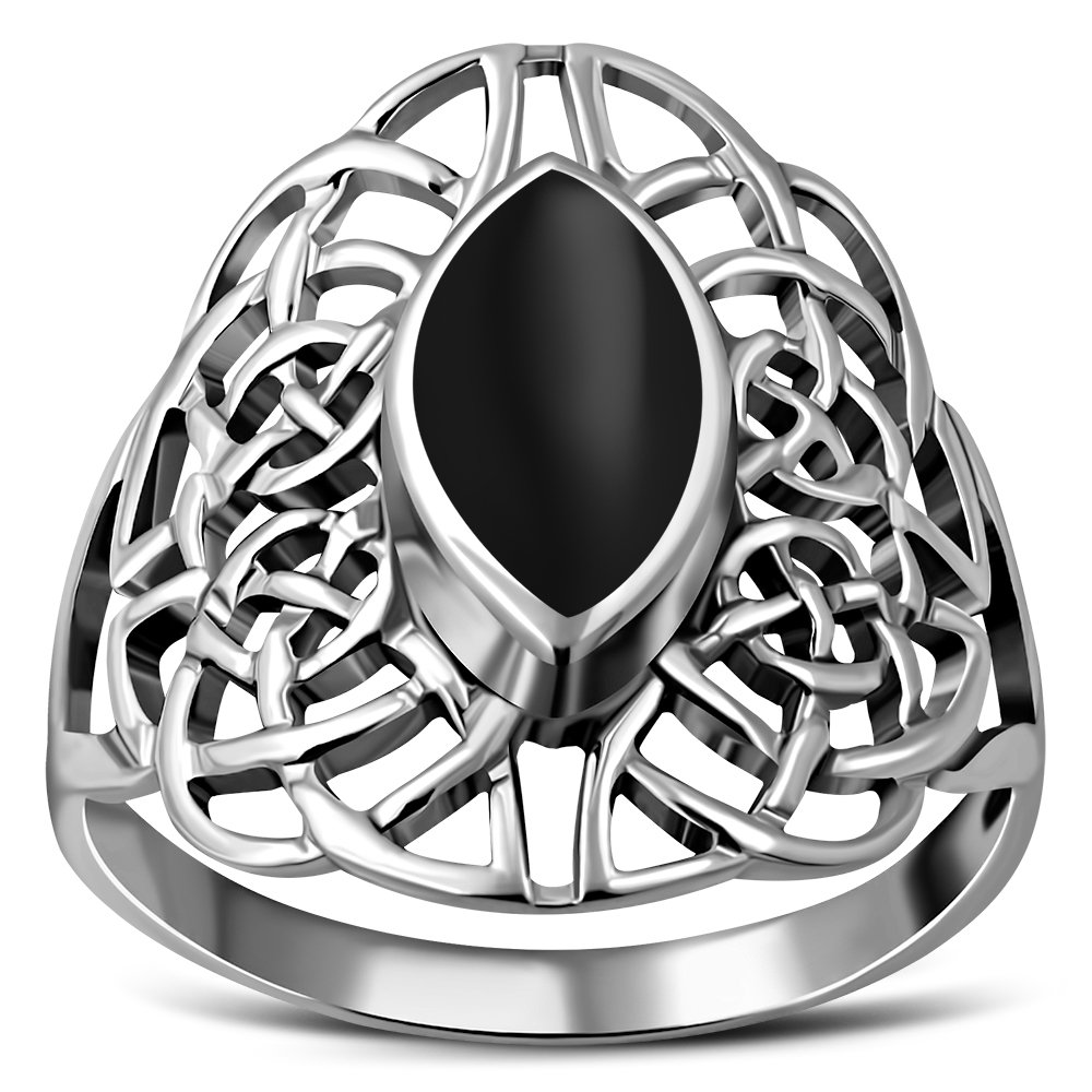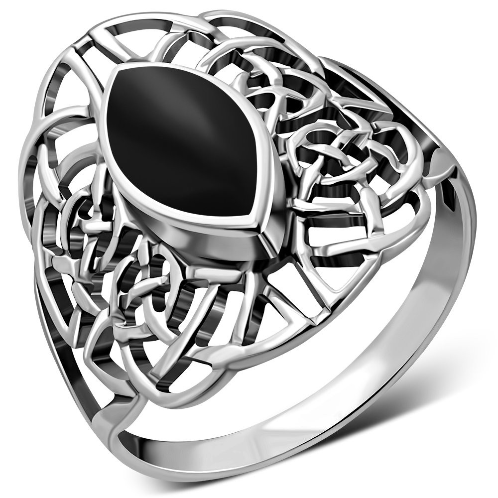 Large Black Onyx Celtic Silver Ring.