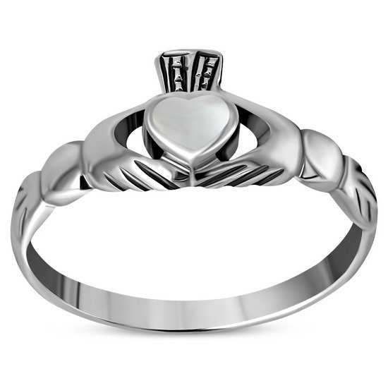 Theme: Mother of Pearl Irish Claddagh Ring.