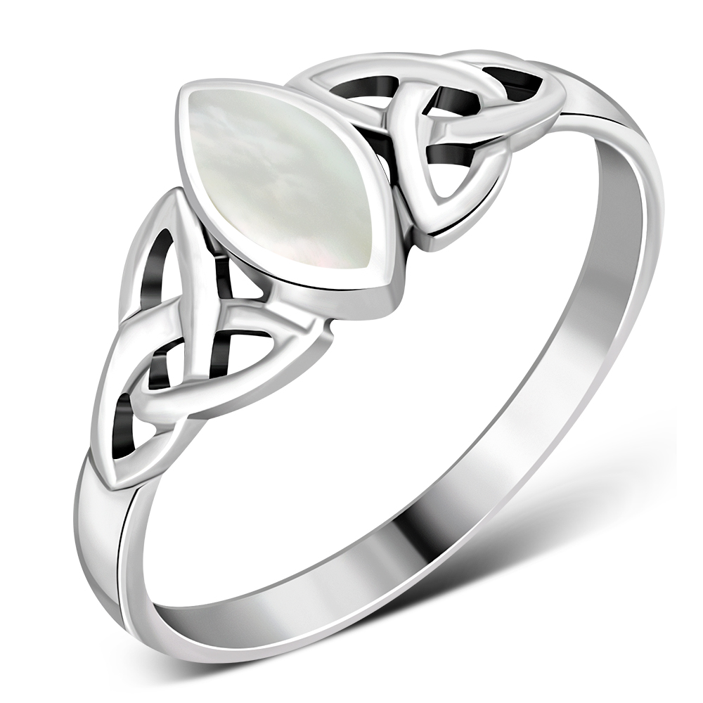 Mother of Pearl Shell Celtic Trinity Knot Silver Ring, R369