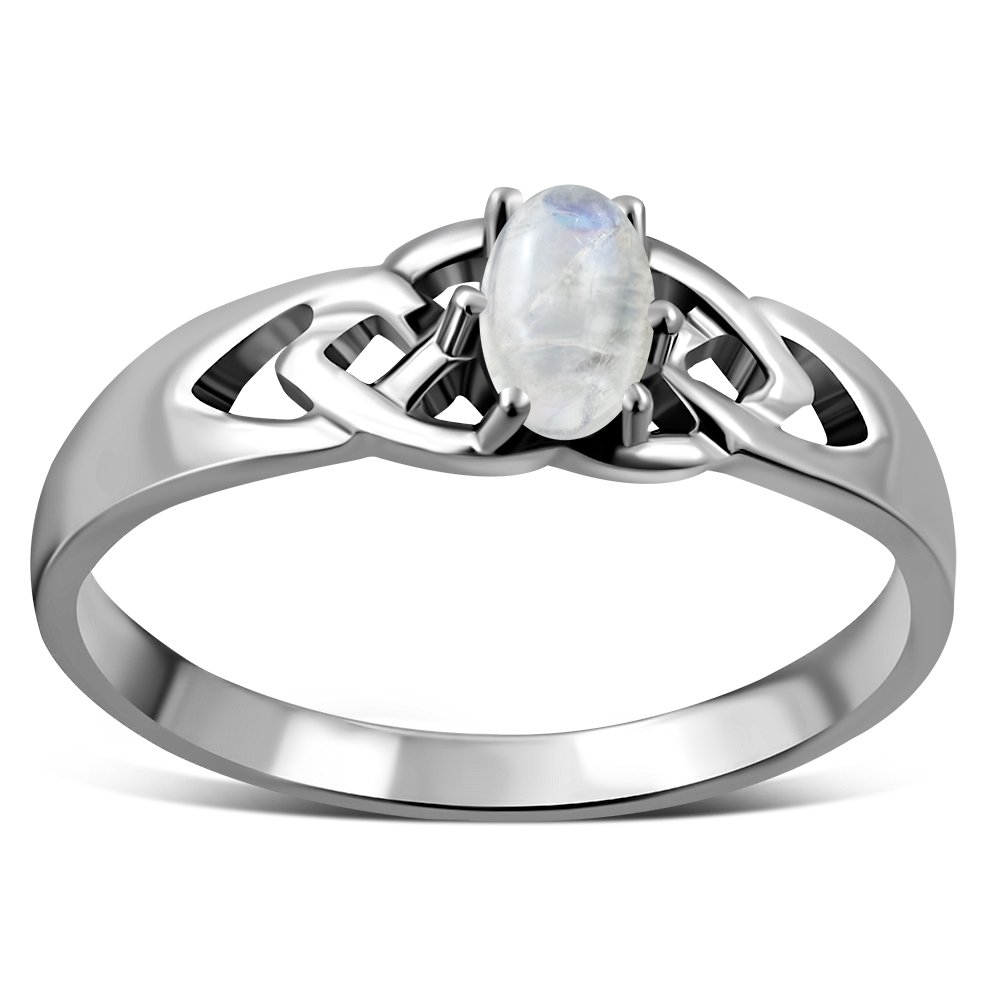 Theme: Rainbow Moonstone Celtic Knot Silver Ring.